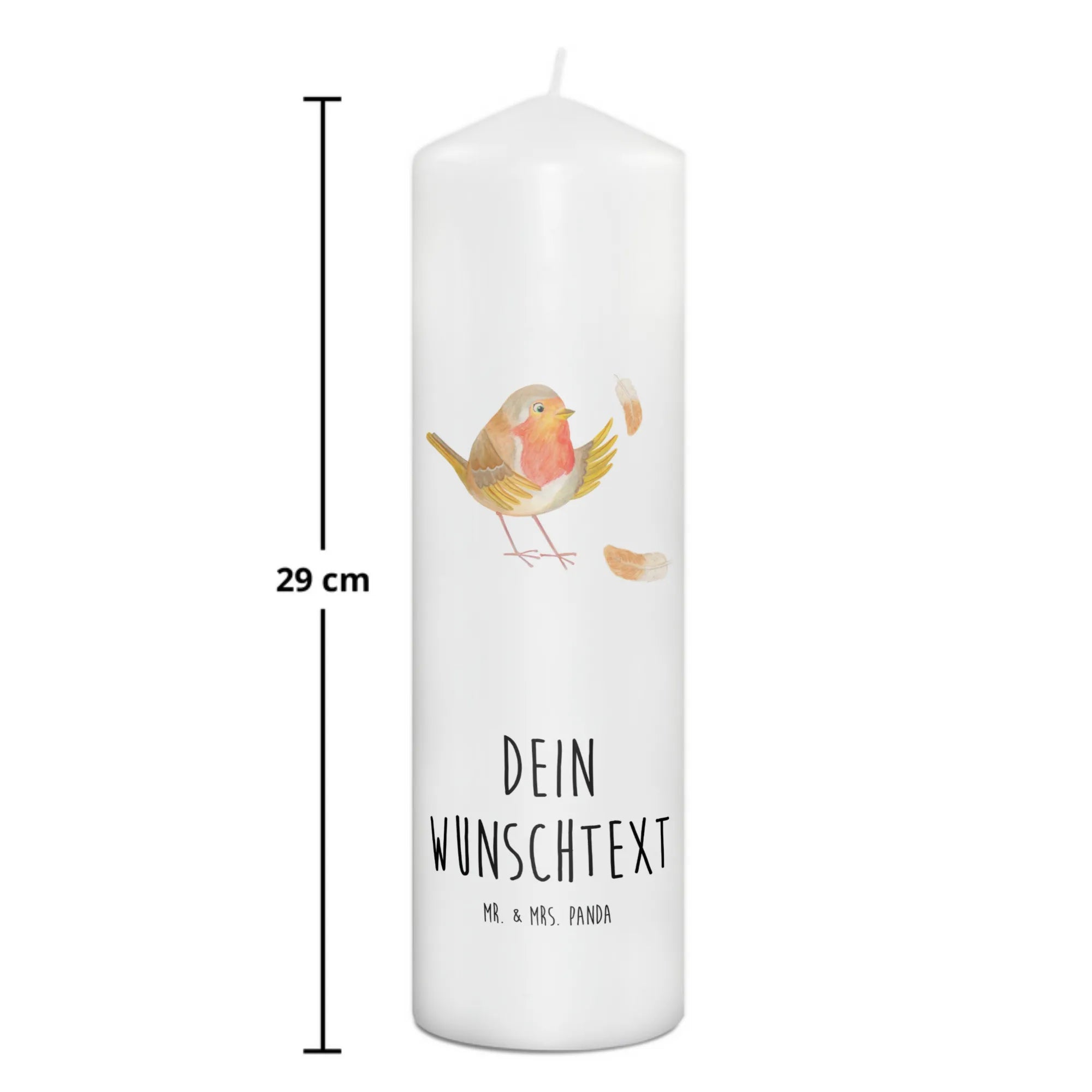 Personalisierte Kerze Rotkehlchen mit Federn - 29 x 8 cm XL