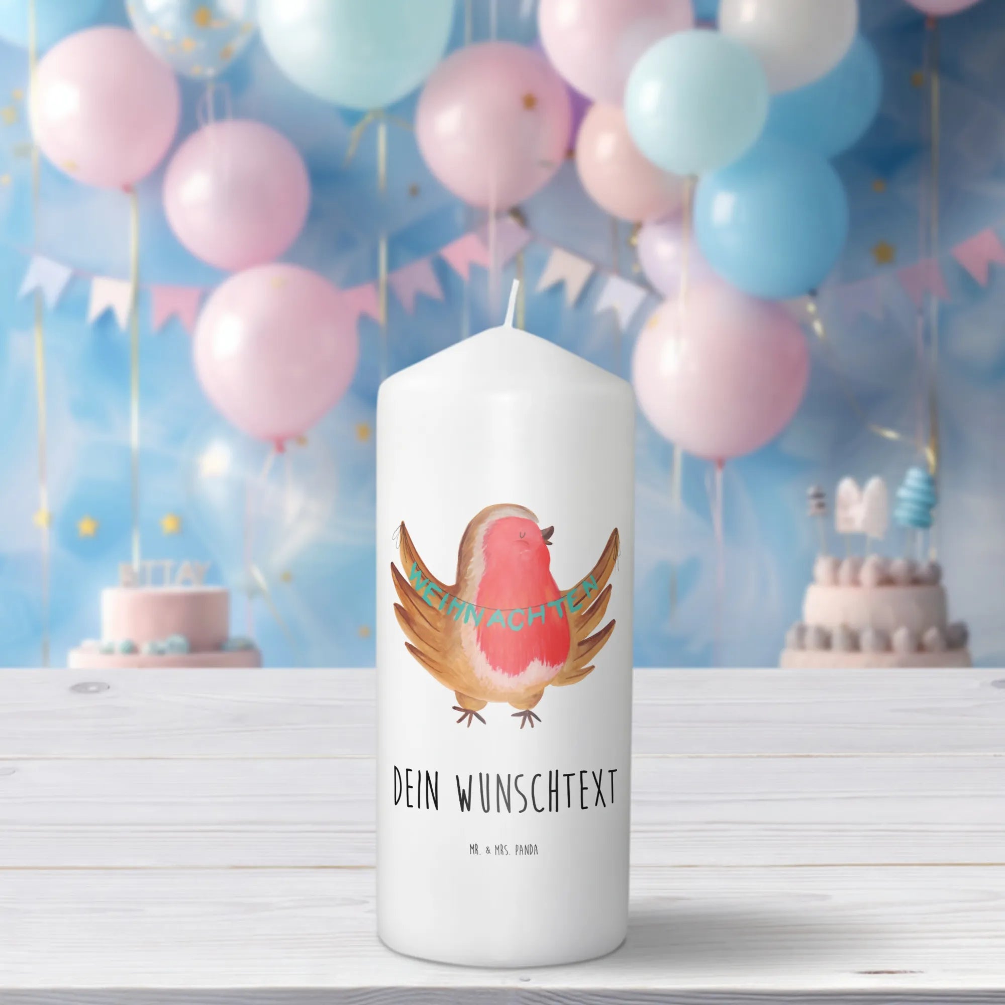 Personalisierte Kerze Rotkehlchen Weihnachten - 29 x 8 cm XL
