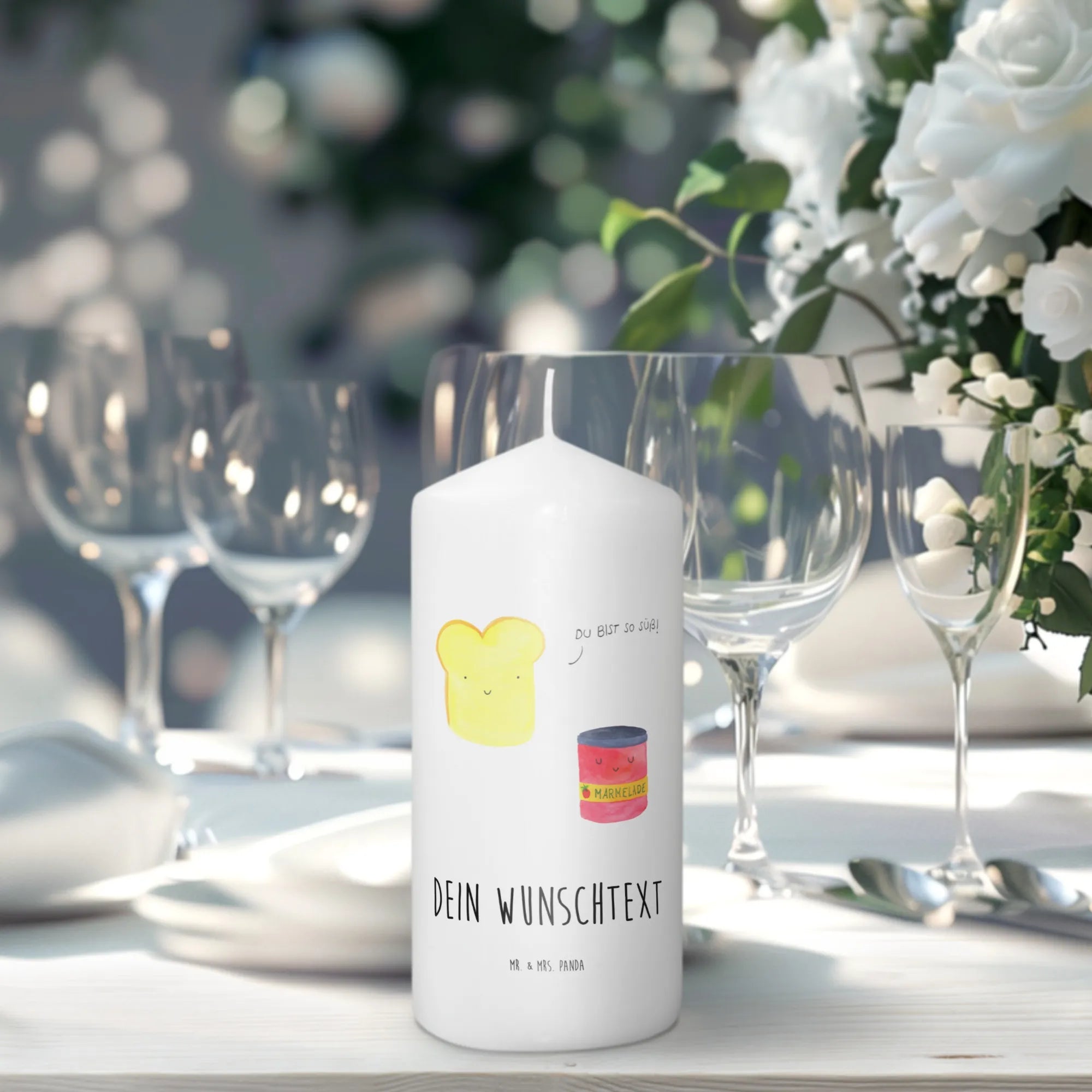 Die personalisierte Kerze "Toast & Marmelade" aus der zauberhaften Small World Kollektion von Mr. & Mrs. Panda ist das perfekte Geschenk für jeden Anlass! Diese edle und wunderschöne Kerze mit einem liebevoll gestaltetem Motiv zeigt ein süßes Toast und eine Marmelade, die ineinander verliebt sind – und darüber steht der Spruch "Wir sind ein tolles Team." Diese Kerze ist nicht nur eine Augenweide, sondern auch ein echtes Highlight für jede Feier.