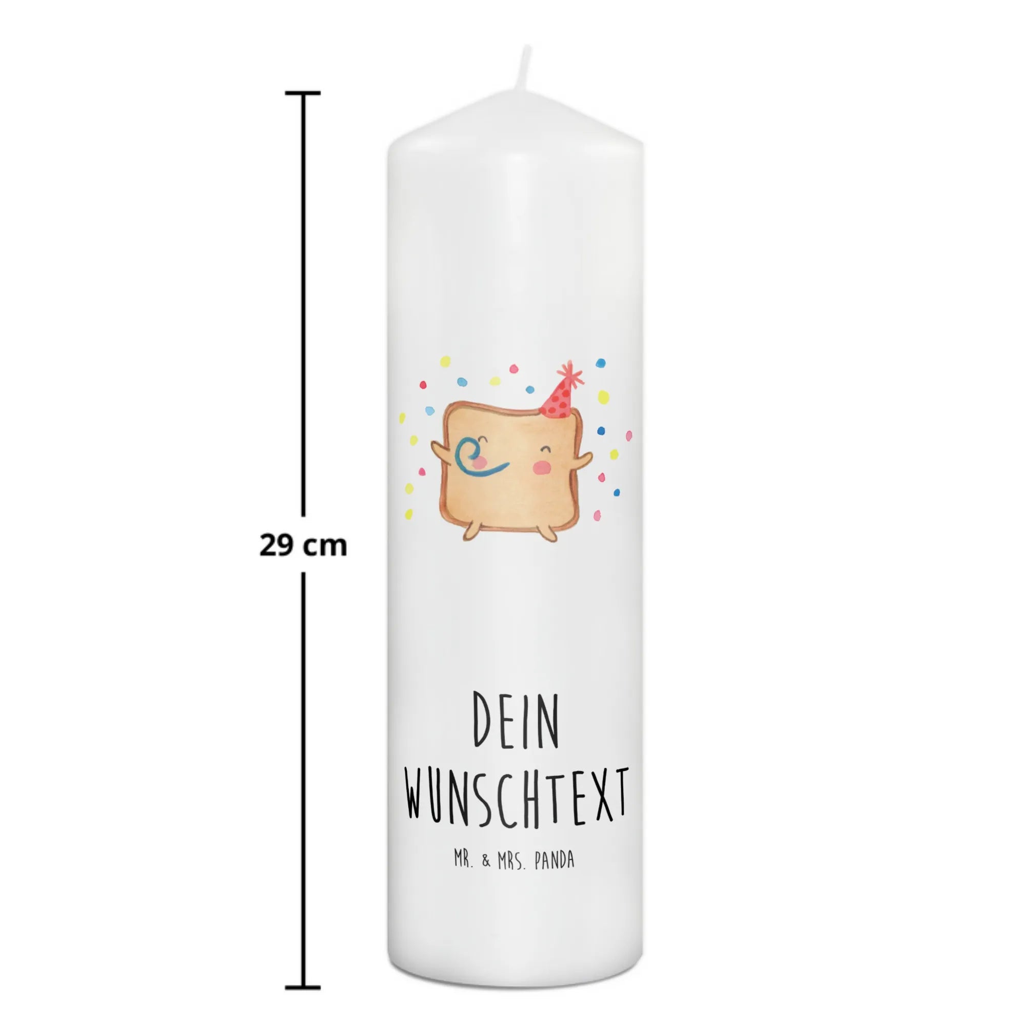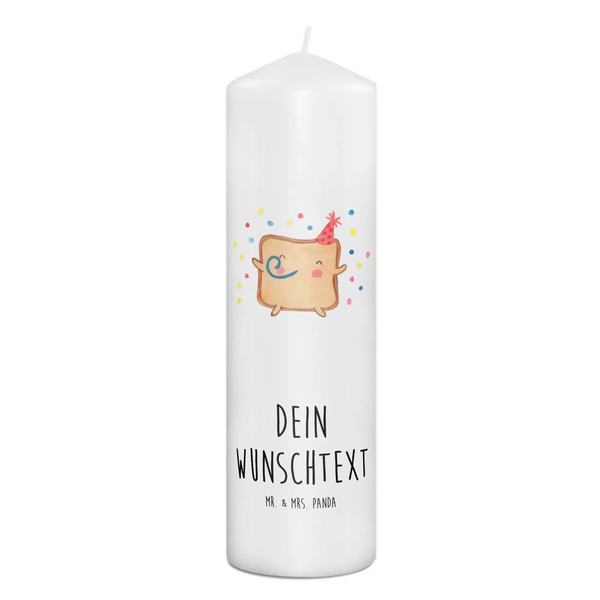 Zudem kannst Du die Kerze mit Deinem Wunschnamen oder Wunschtext personalisieren, was sie zu einem ganz besonderen Unikat macht. Ein wahres Highlight ist die liebevolle handgezeichnete Illustration, die für eine fröhliche und einladende Atmosphäre sorgt. Umgeben von bunten Konfetti-Punkten und dem festlichen Partyhut des Toasts, wird diese Kerze das Herz jedes Empfängers höher schlagen lassen.