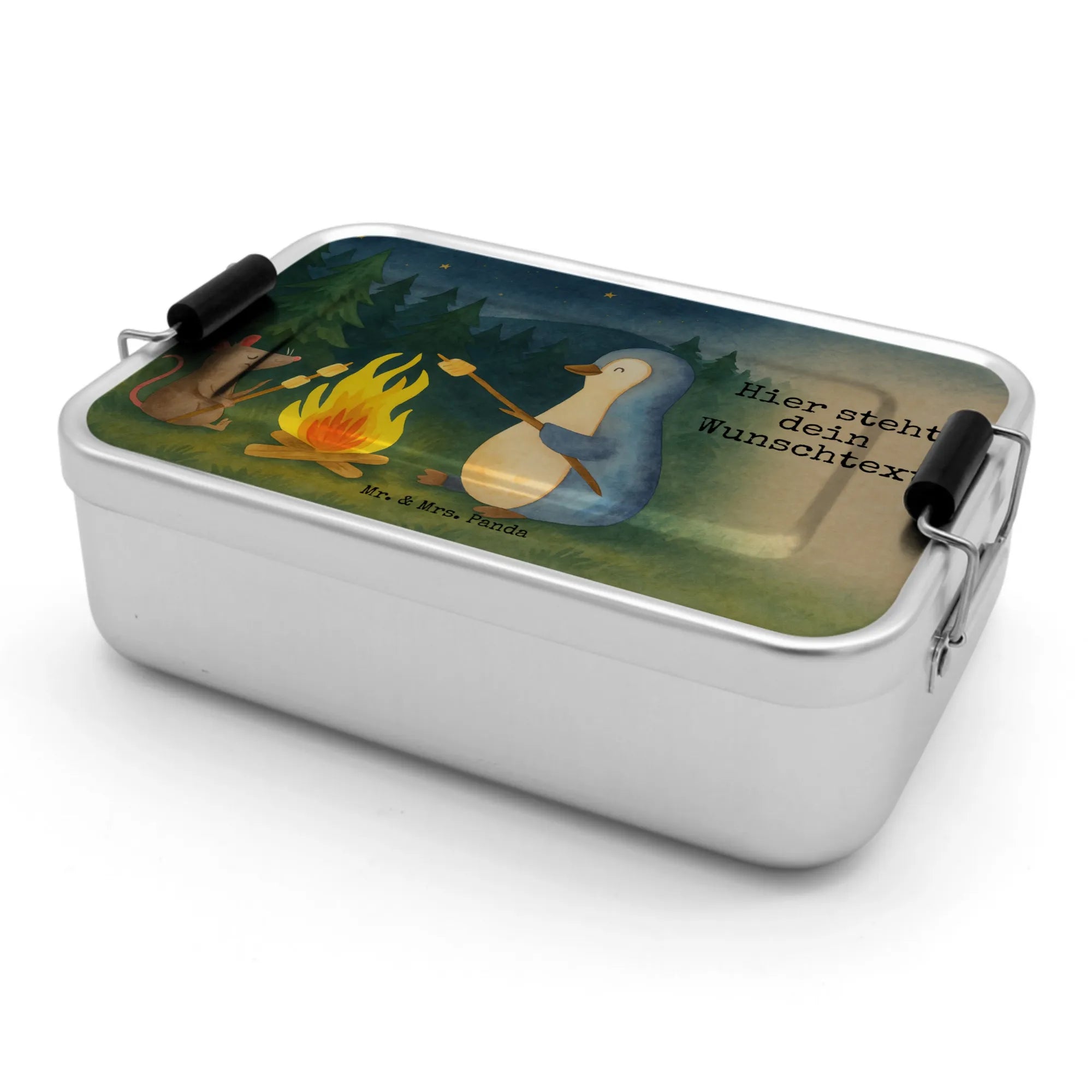 Verliebe dich in die personalisierte Metall Brotdose von Mr. & Mrs. Panda, die deine Pausenbrote zu einem echten Hingucker macht! Diese stilvolle Brotdose ist aus hochwertigem, langlebigem Aluminium gefertigt und hat die perfekten Maße von 173 mm x 118 mm x 55 mm für schmackhafte Snacks oder kleine Mahlzeiten. Ihr Design wird mit den einzigartigen und bezaubernden Motiven von Mr. & Mrs. Panda bedruckt und kann mit deinem persönlichen Wunschnamen oder Wunschtext versehen werden – so wird jede Lunchzeit zu einem besonderen Erlebnis! Die Brotdose hat nicht nur einen nostalgischen Retrolook, sondern bietet auch ausreichend Platz für ein komplettes Frühstück oder Mittagessen. Mit ihrem stabilen, leichten und benutzerfreundlichen Doppelverschluss von Klemmbügeln ist sie ideal für den Alltag. Zudem ist die Brotdose auf Lebensmittelechtheit geprüft und lässt sich kinderleicht mit der Hand reinigen – verwenden dabei einfach einen sanften, weichen Schwamm. Hol dir deine personalisierte Brotdose und mach jeden Snack zu etwas Einzigartigem!