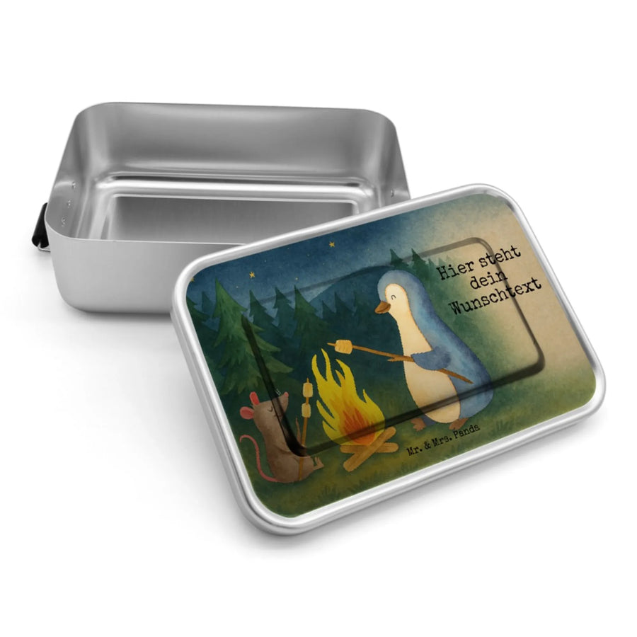 Personalisierte Brotdose Pinguin Lagerfeuer Design - Eisblau