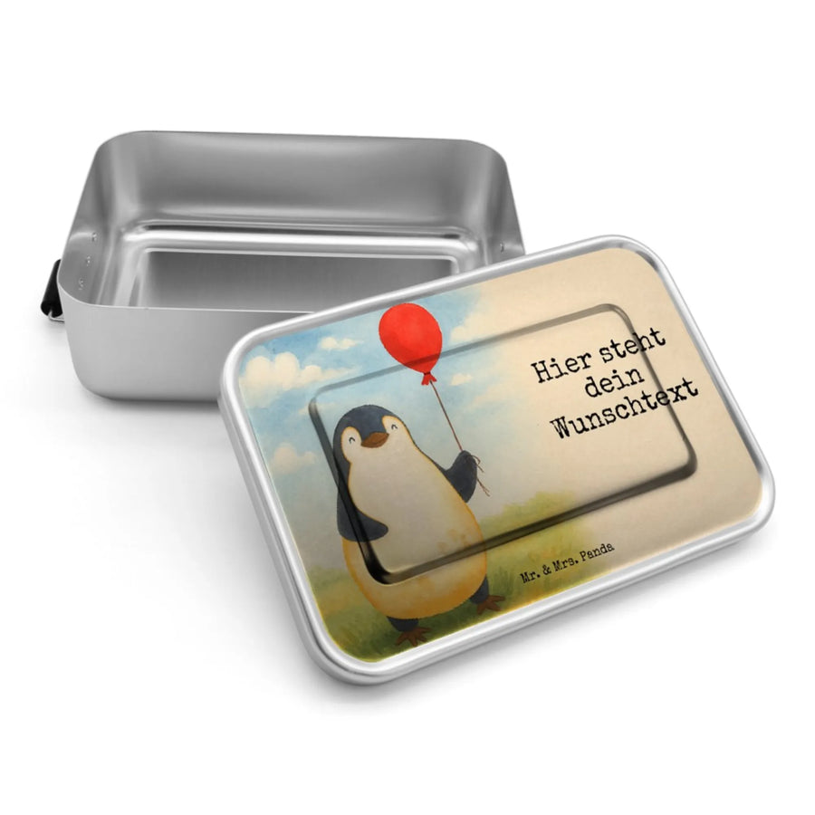 Personalisierte Brotdose Pinguin Luftballon Design - Eisblau