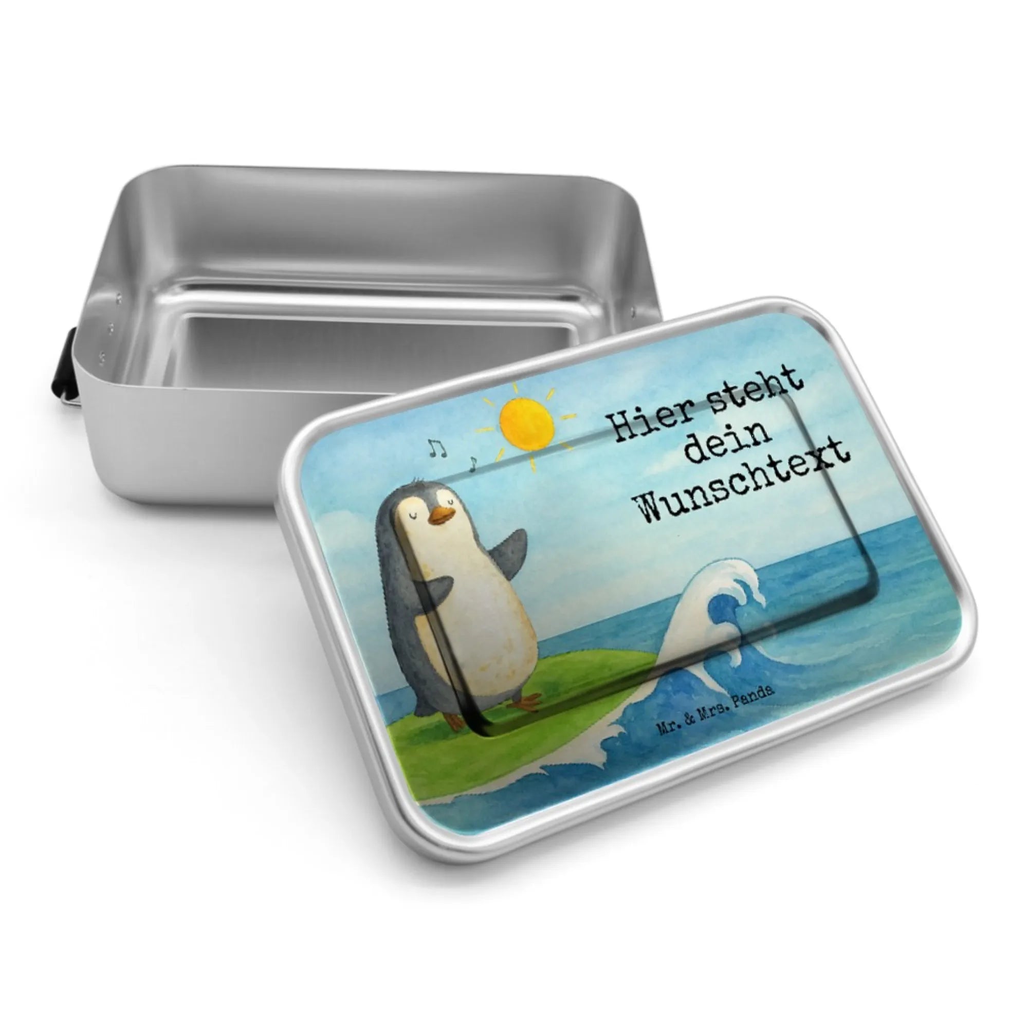 Personalisierte Metall Brotdose „Pinguin Surfer“ – dein täglicher Mutmacher!