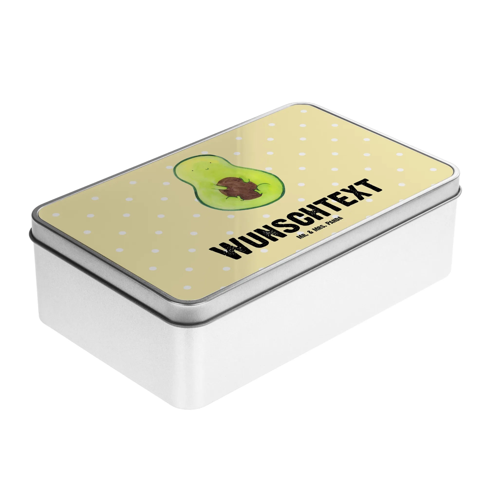 Die personalisierte Metalldose mit dem niedlichen Motiv Avocado mit Kern von Mr. & Mrs. Panda ist der perfekte Begleiter für alle, die die kleinen und feinen Dinge im Leben schätzen. Diese besondere Dose ist mehr als nur ein Aufbewahrungsort für Kekse oder Andenken; sie ist ein Stück Lebensfreude, das dein Zuhause verschönert. Handgezeichnet von Mrs. Panda, bringt die süße Avocado mit ihrem kernigen Charme ein Lächeln in jeden Raum.