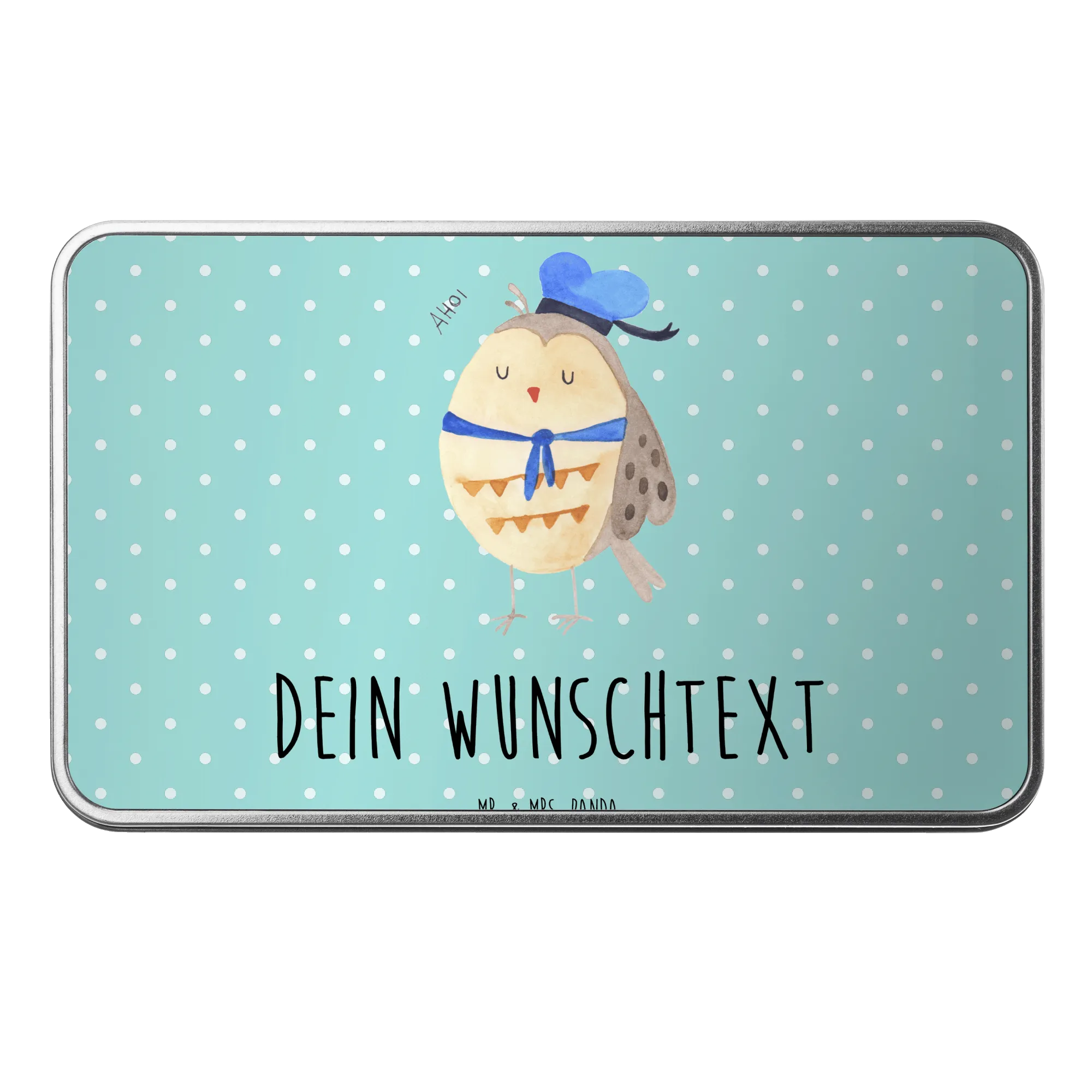 Die personalisierte Metalldose Eule Matrosen von Mr. & Mrs. Panda ist das perfekte Geschenk für jeden Anlass. Ob als Hochzeitsgeschenk für das Brautpaar, zum Hochzeitstag für deine Liebe oder einfach als tolle Überraschung für deine beste Freundin – diese Dose bringt Freude in jedes Zuhause!