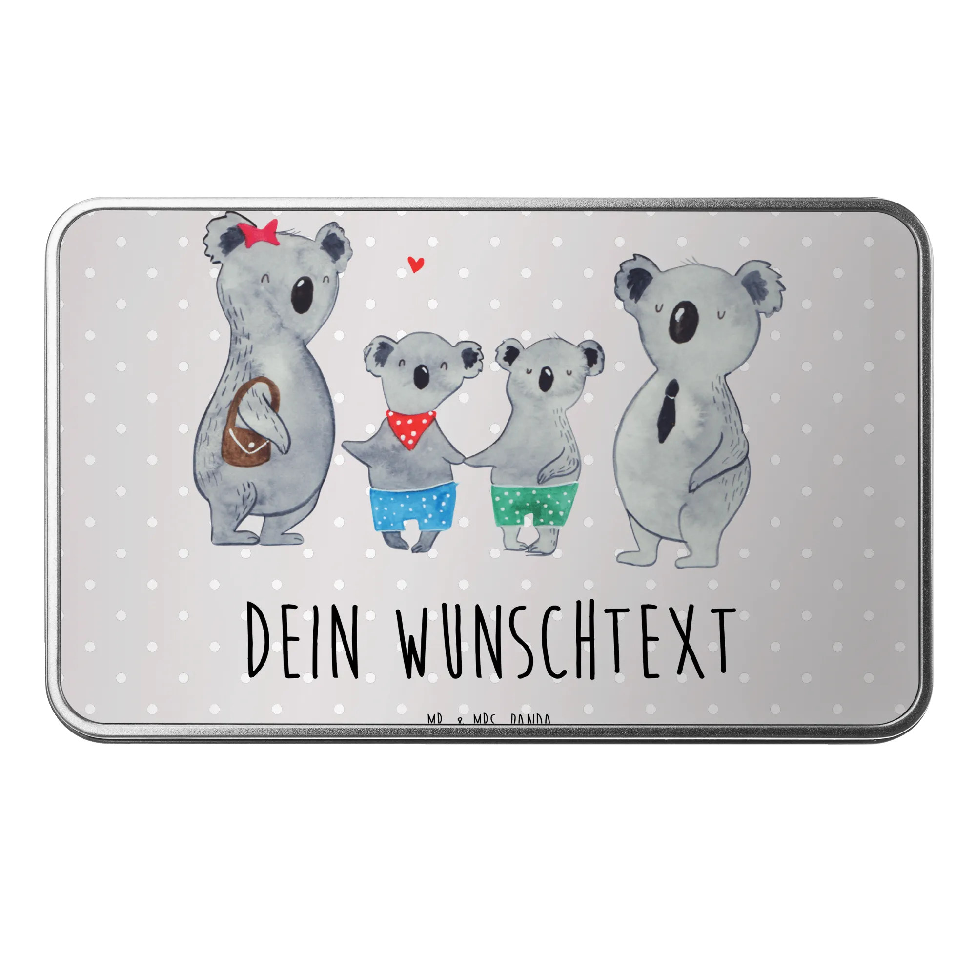 Entdecke die personalisierte Metalldose mit dem süßen Motiv "Koala Familie zwei" von Mr. & Mrs. Panda, die perfekt für alle Familienmitglieder ist! Diese besondere Dose ist mehr als nur ein praktisches Aufbewahrungselement – sie ist ein echtes Liebhaberstück, das wunderschöne Momente der Familienzeit festhält.