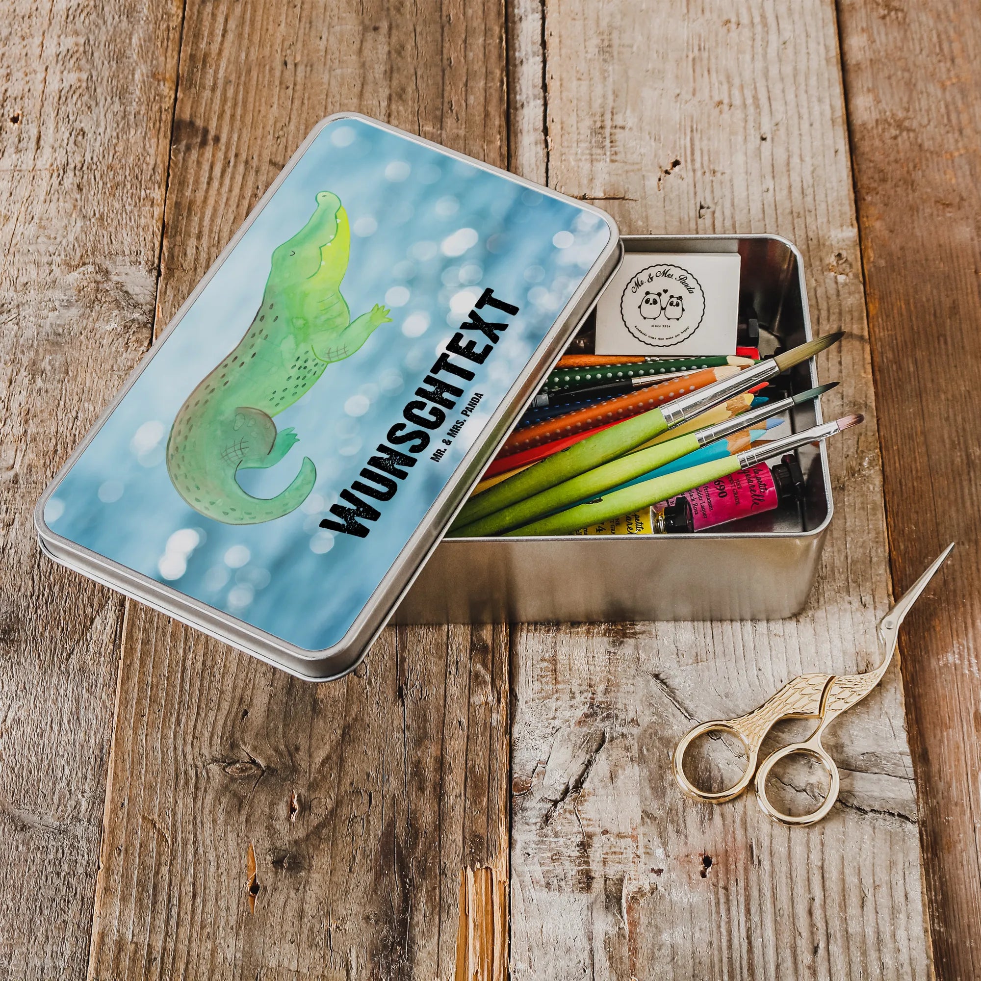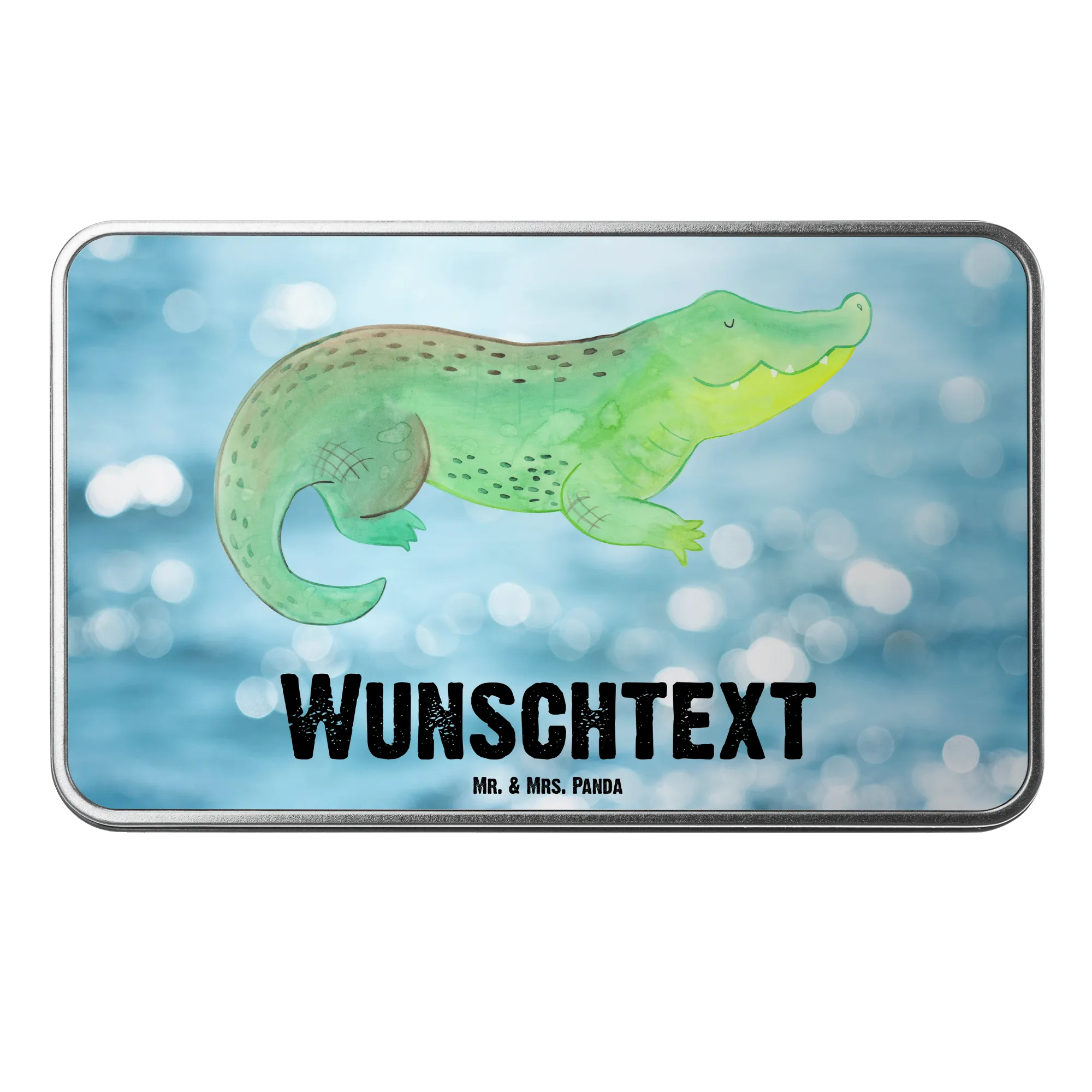 Die personalisierte Metalldose mit dem süßen Krokodil-Motiv aus der Meerestiere-Kollektion von Mr. & Mrs. Panda ist das perfekte Geschenk für alle, die das Abenteuer und spontane Reisen lieben! Egal, ob für die beste Freundin, deinen Lieblingsmenschen oder als kleine Aufmerksamkeit während der nächsten Reise – diese Dose ist nicht nur praktisch, sondern auch ein echter Blickfang. Das fröhlich lächelnde Krokodil in sanften Grün- und Blautönen bringt direkt gute Laune und lädt dazu ein, einfach mal verrückt zu sein. Mit dem liebevollen Slogan 'Lass uns einfach mal verrückt sein und was wagen, wovon wir später unseren Enkeln erzählen können.' motiviert sie jeden dazu, das Leben und seine Abenteuer zu genießen.