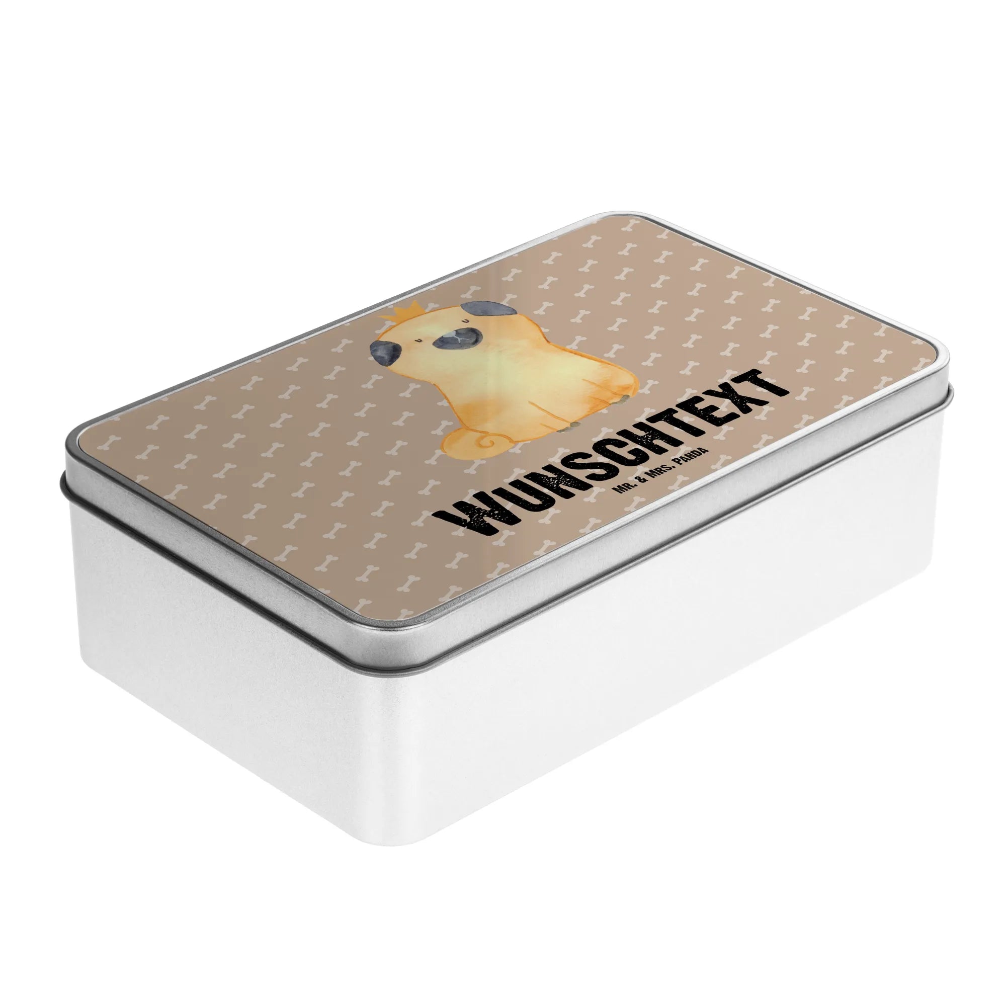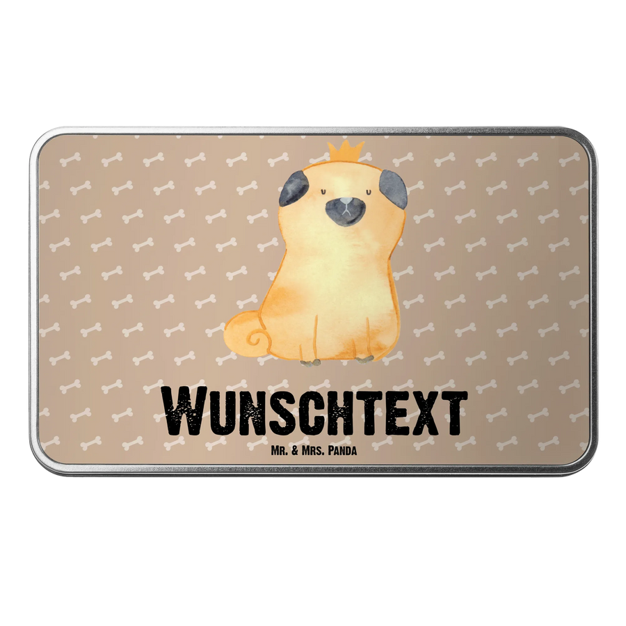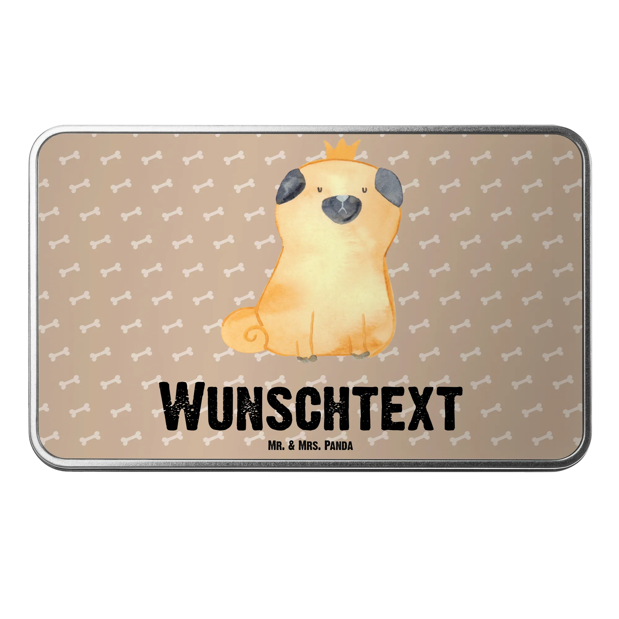 Du suchst nach dem perfekten Geschenk für einen Hundeliebhaber? Dann ist unsere personalisierte Metalldose mit dem niedlichen Mops Krone Motiv genau das Richtige!
