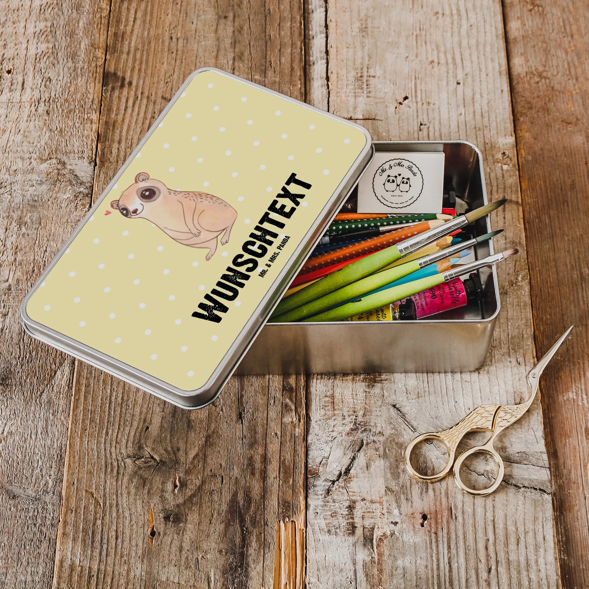 Zeige deine kreative Seite mit der personalisierten Metalldose von Mr. & Mrs. Panda! Diese einzigartige Dose hat die Maße 198 mm x 128 mm x 50 mm und wiegt 180 g. Das hochwertige Metall sorgt für eine besonders hohe Stabilität und Langlebigkeit. Mit zauberhaften Druckmotiven führt diese Metalldose in die Welt von Mr. & Mrs. Panda und lässt sich ganz nach deinen Wünschen personalisieren. Ob du sie für Kekse, wichtige Erinnerungen oder als formschöne Geschenkbox nutzen möchtest – diese Dose ist in jedem Fall ein Hingucker. Die glänzende Oberfläche unterstreicht den hochwertigen Eindruck. Zur Pflege empfehlen wir die Handspülung, damit du lange Freude an deiner Dose hast.