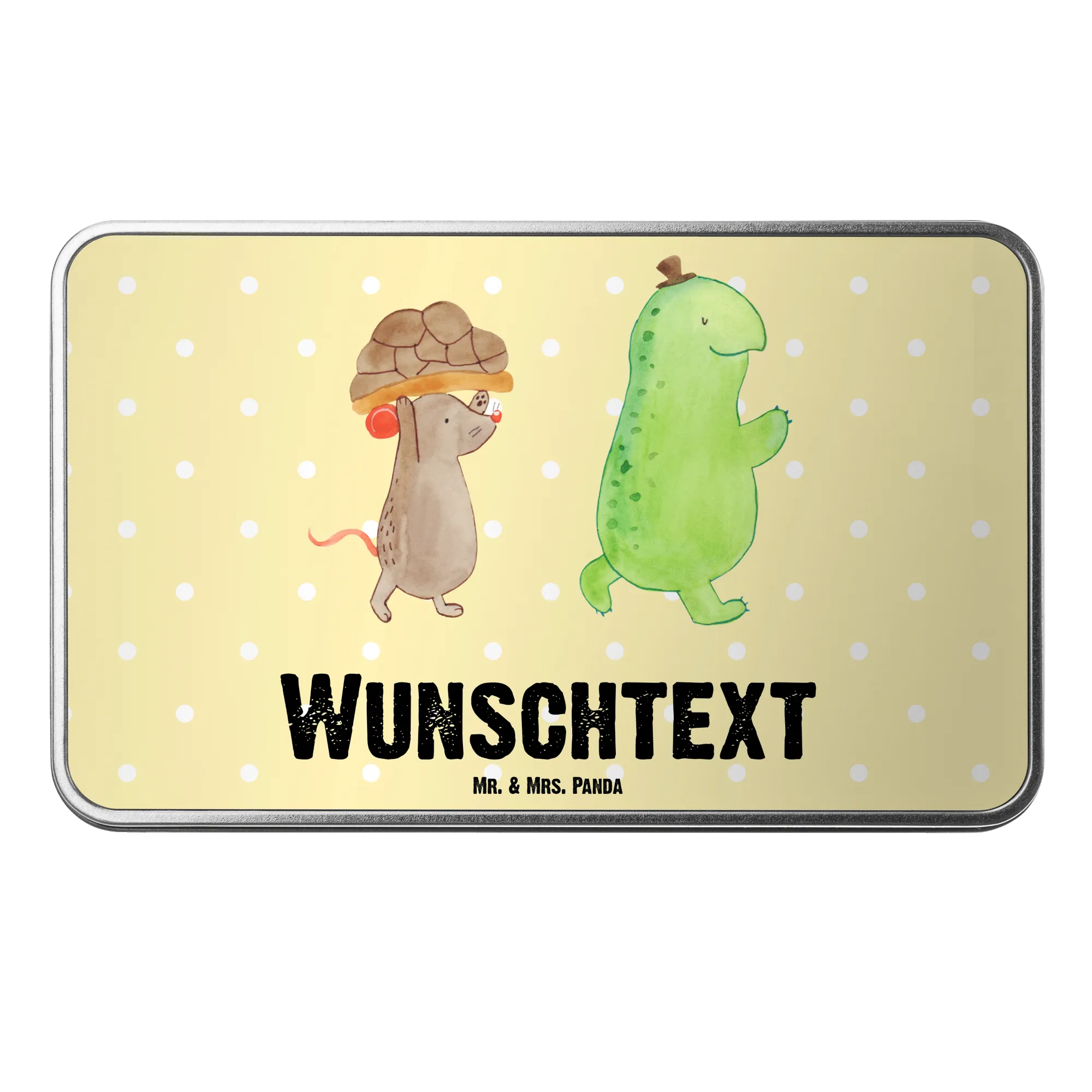 Egal, ob du nach einem besonderen Geschenk für einen Anlass suchst oder einfach nur deine Lieblingssüßigkeiten stilvoll aufbewahren möchtest, diese personalisierte Metalldose ist die perfekte Wahl. Lass die Schildkröte und die Maus dein Herz erfreuen und mache dir und deinen Lieben eine Freude mit einem Geschenk, das von Herzen kommt!