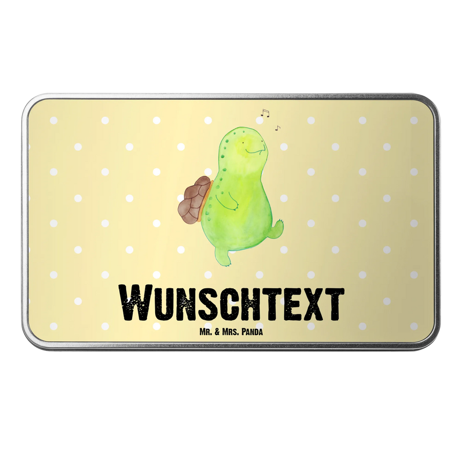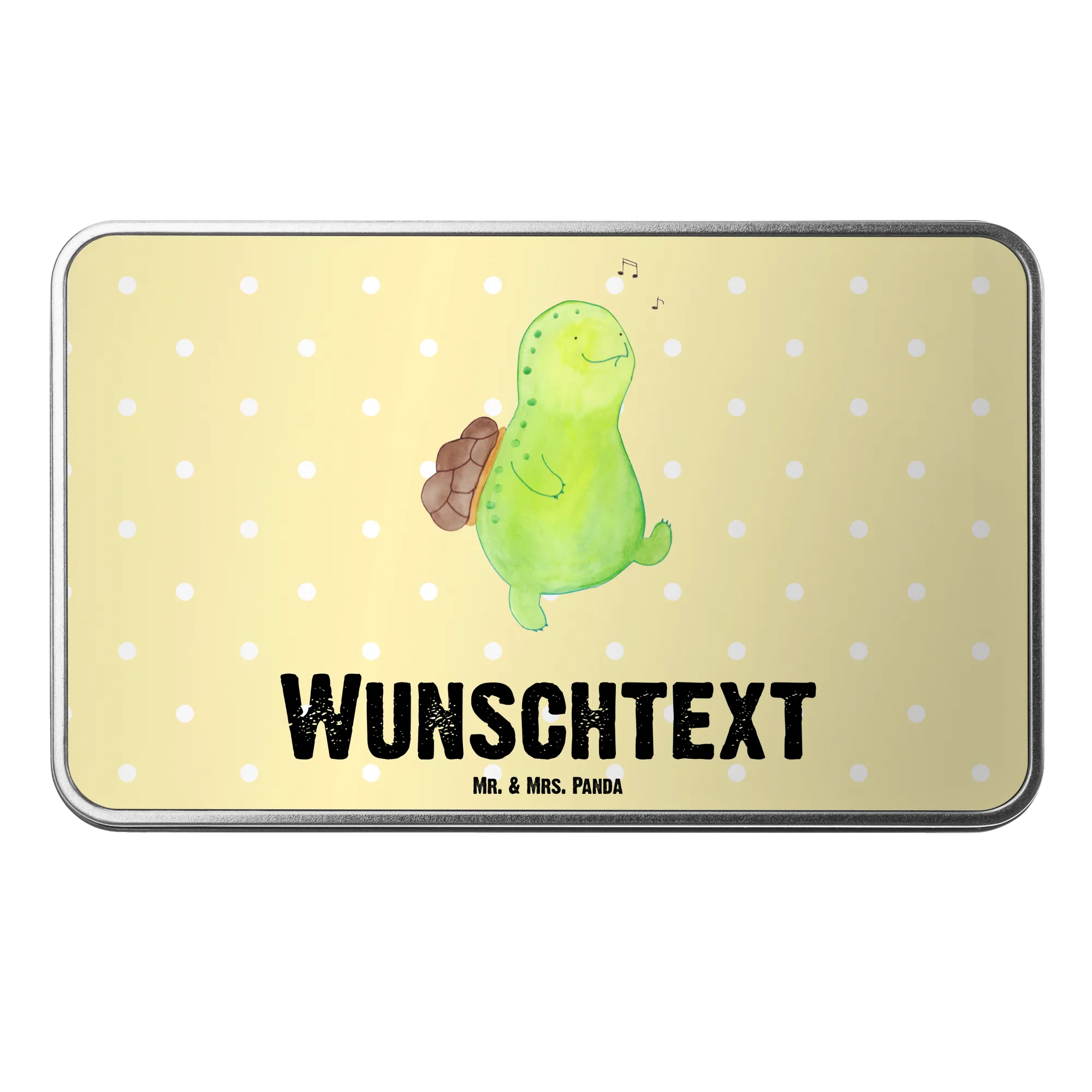 Die personalisierte Metalldose mit dem fröhlichen Schildkröten-Motiv von Mr. & Mrs. Panda ist das perfekte Geschenk für alle, die Lebensfreude und Optimismus lieben. Ob zur Aufbewahrung von Keksen, kleinen Erinnerungen oder als nachhaltige Geschenkbox – diese Dose macht immer eine gute Figur.