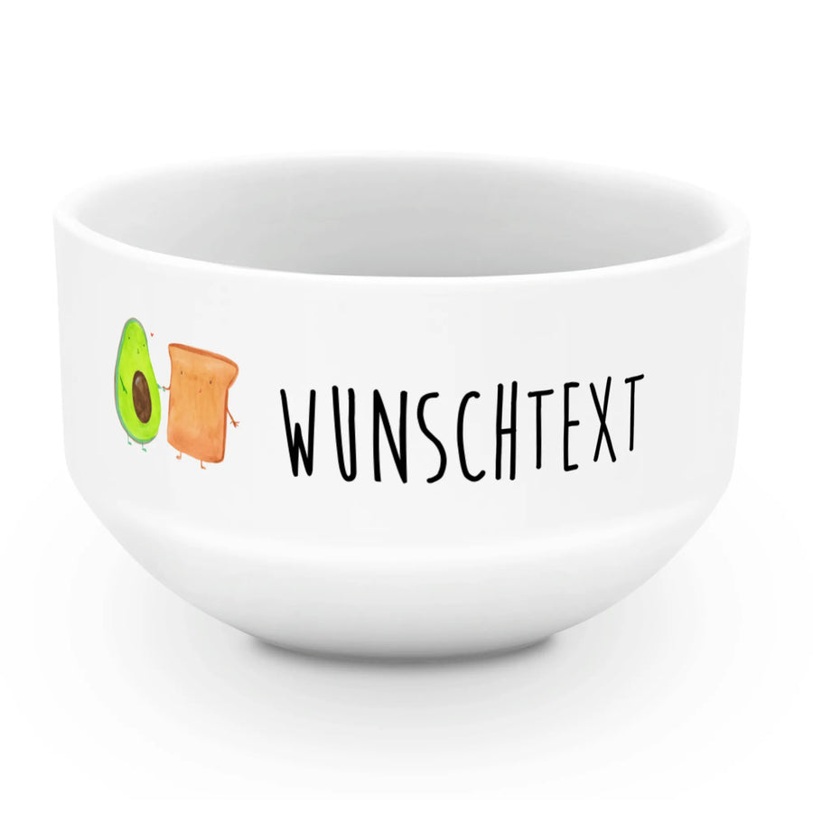Die Kombination aus der liebevollen Zeichnung einer süßen Avocado, die Hand in Hand mit einem niedlichen Toast gehalten wird, bringt garantiert ein Lächeln auf dein Gesicht. Überrasche deine Liebsten zum Jahrestag oder zur Verlobung mit dieser besonderen Müslischüssel.