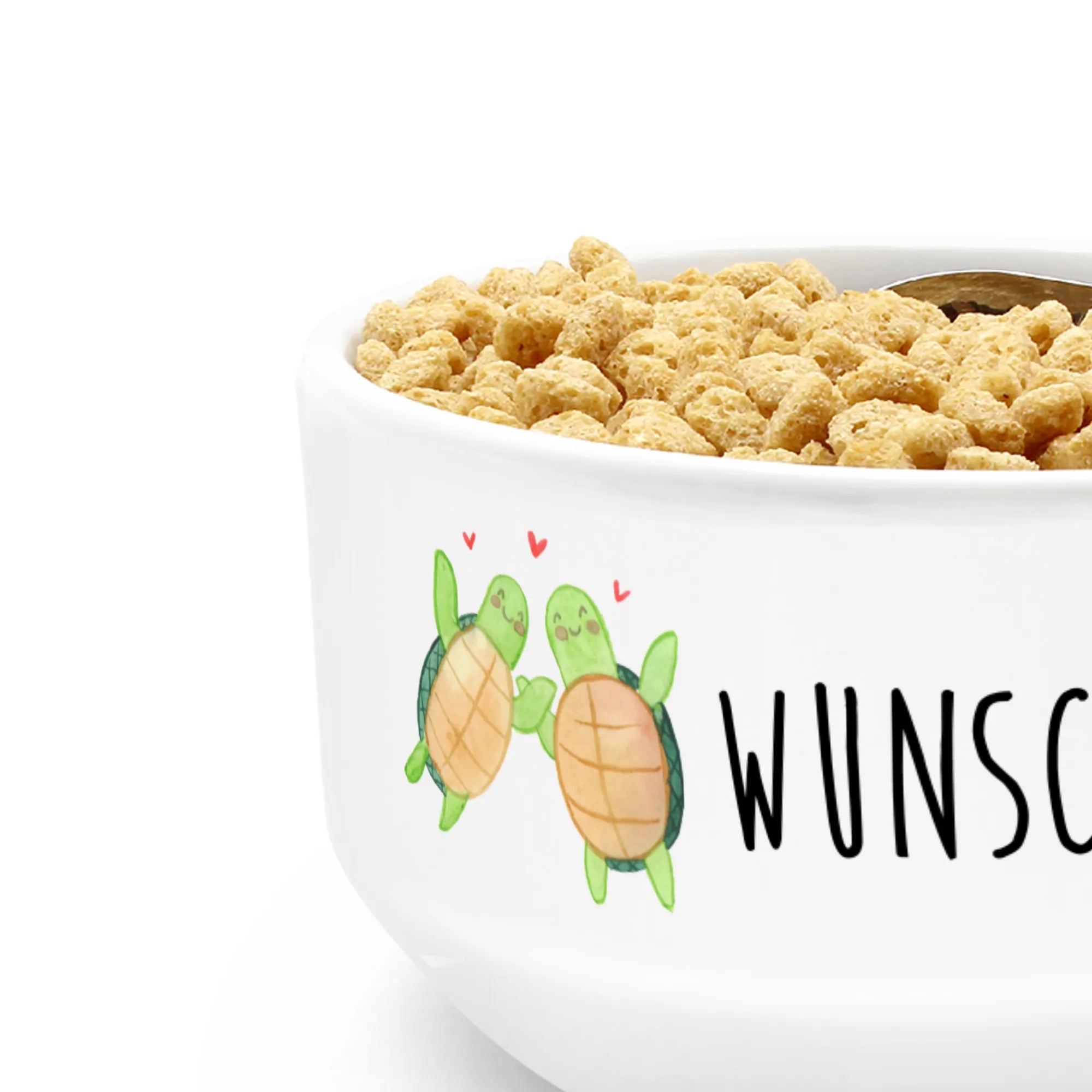 Entdecke die bezaubernde Personalisierte Müslischale mit dem süßen Schildkröten Paar aus der Liebe Kollektion von Mr. & Mrs. Panda! Diese Schüssel ist nicht nur funktional, sondern auch ein absolutes Liebesbeweis-Geschenk! Mit dem liebevollen Slogan 'I am turtley in love with you!' bricht das Herz jedes Mal auf, wenn man sie zur Frühstückstafel holt. Ob Müsli, Obst oder Desserts - diese Schüssel liefert die perfekte Portion Freude mit einem Hauch von Romantik!