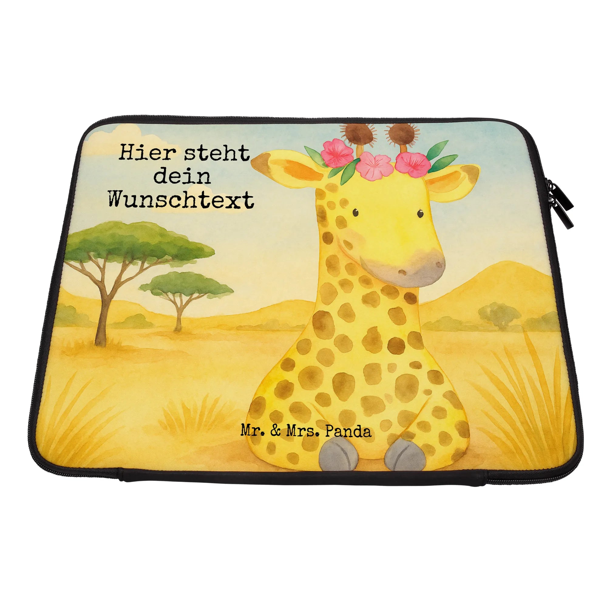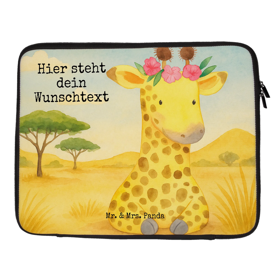Personalisierte Notebook Tasche Giraffe Blumenkranz Design - 20 x 28 cm