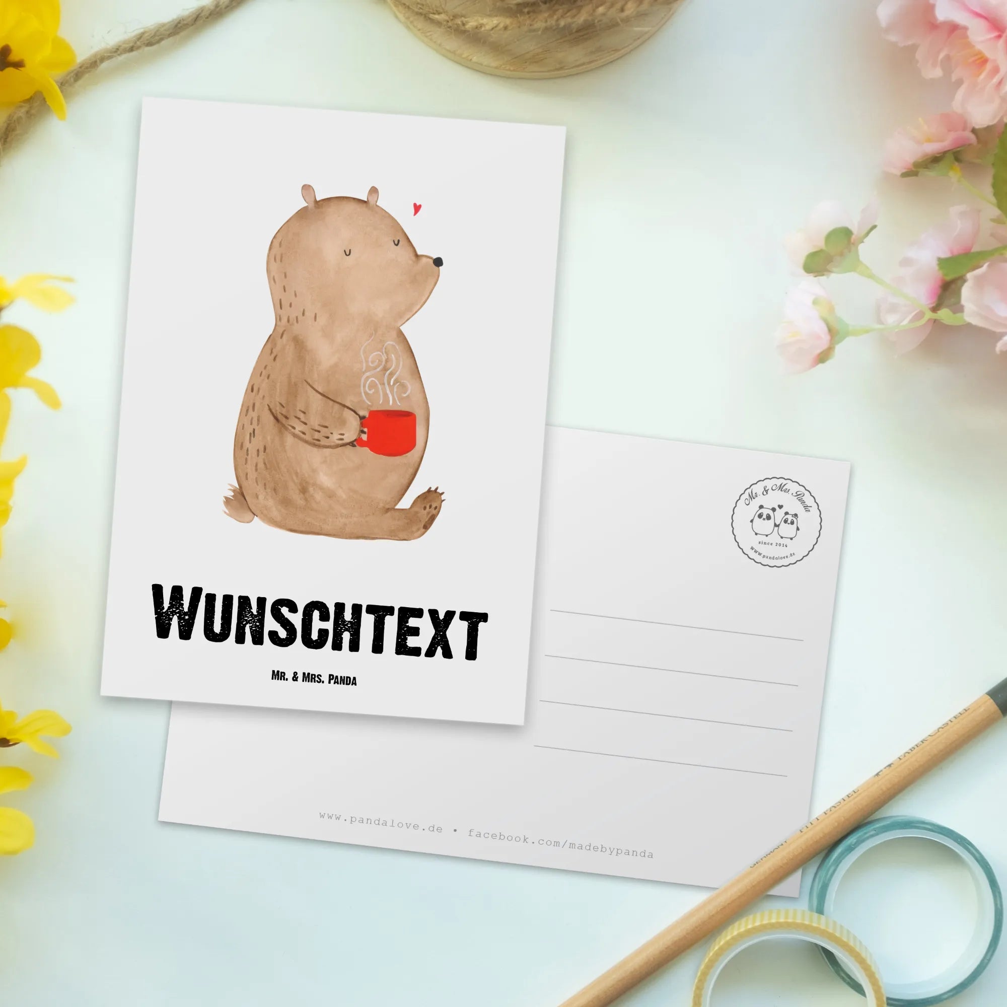 Die personalisierte Postkarte mit dem süßen Motiv "Bär Morgenkaffee" aus der Liebe Kollektion von Mr. & Mrs. Panda ist das perfekte Geschenk für all jene besonderen Momente, in denen Du Deine Liebe und Zuneigung zum Ausdruck bringen möchtest. Ob zum Valentinstag, Jahrestag oder einfach nur, um einen lieben Menschen zu überraschen – diese einzigartige Postkarte lässt Herzen höher schlagen!