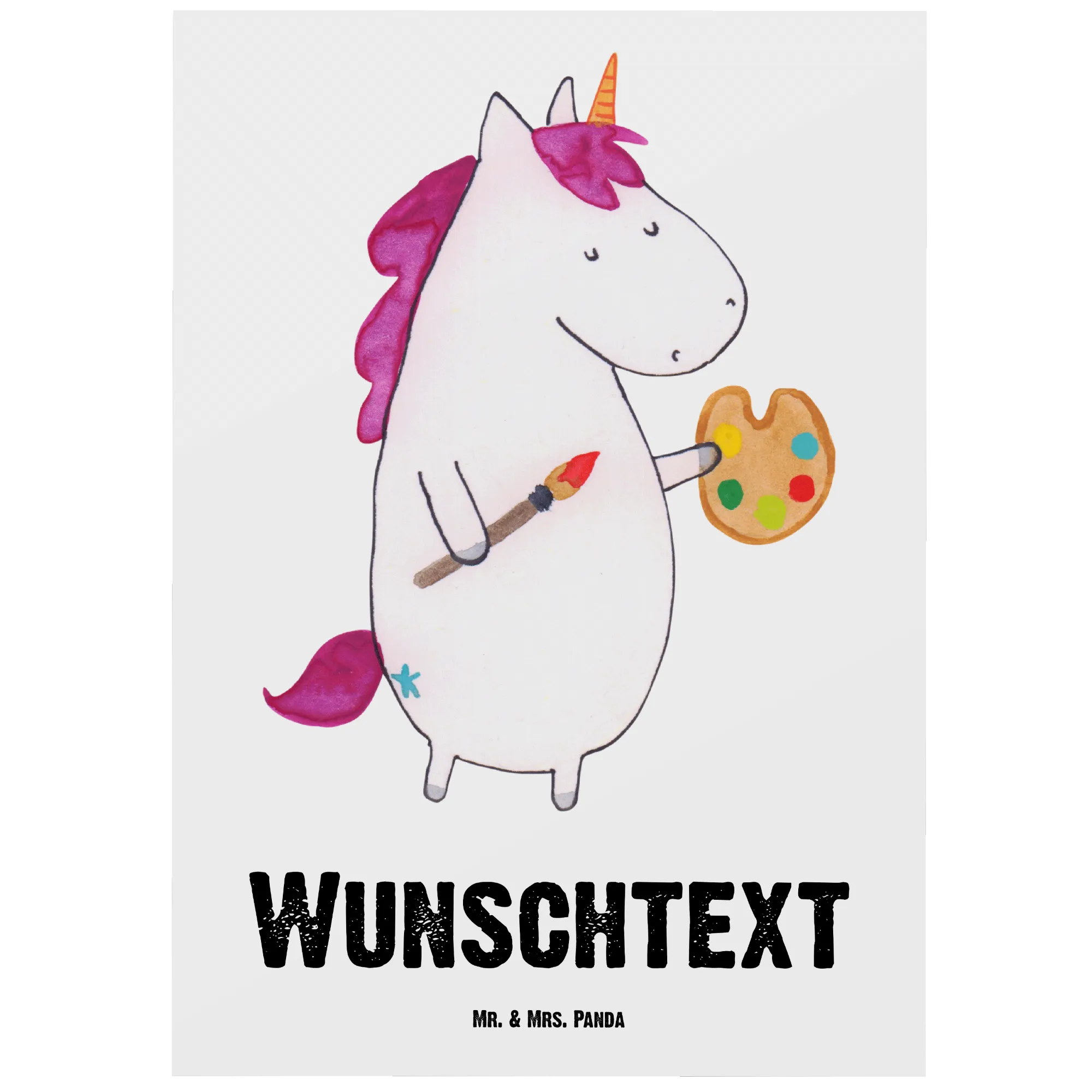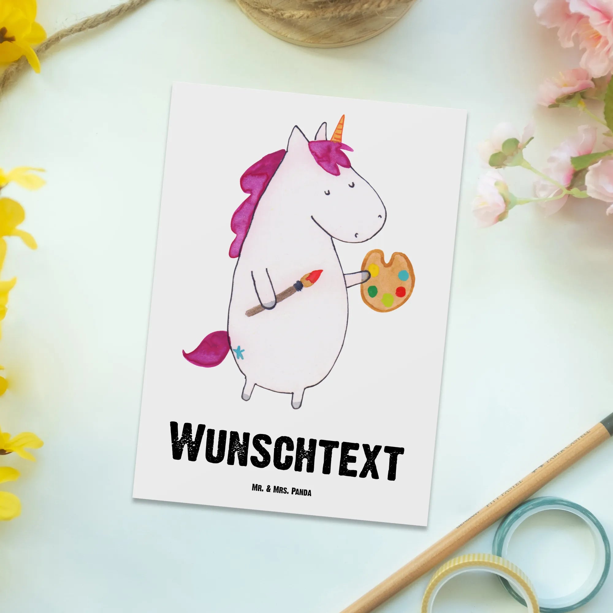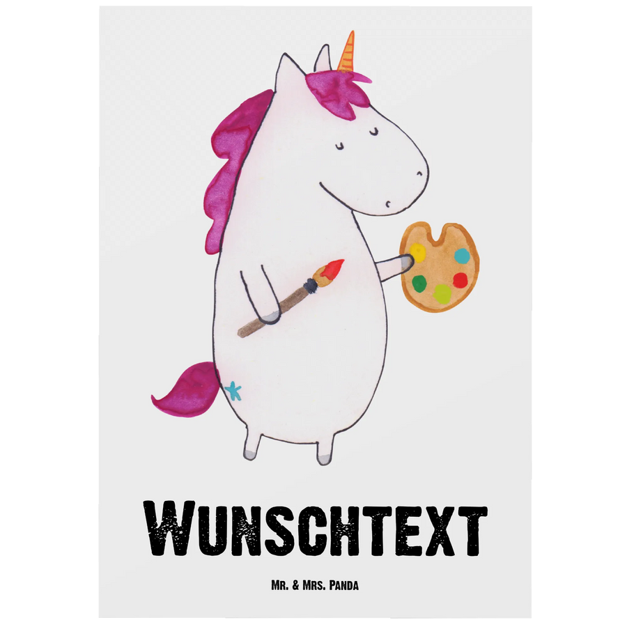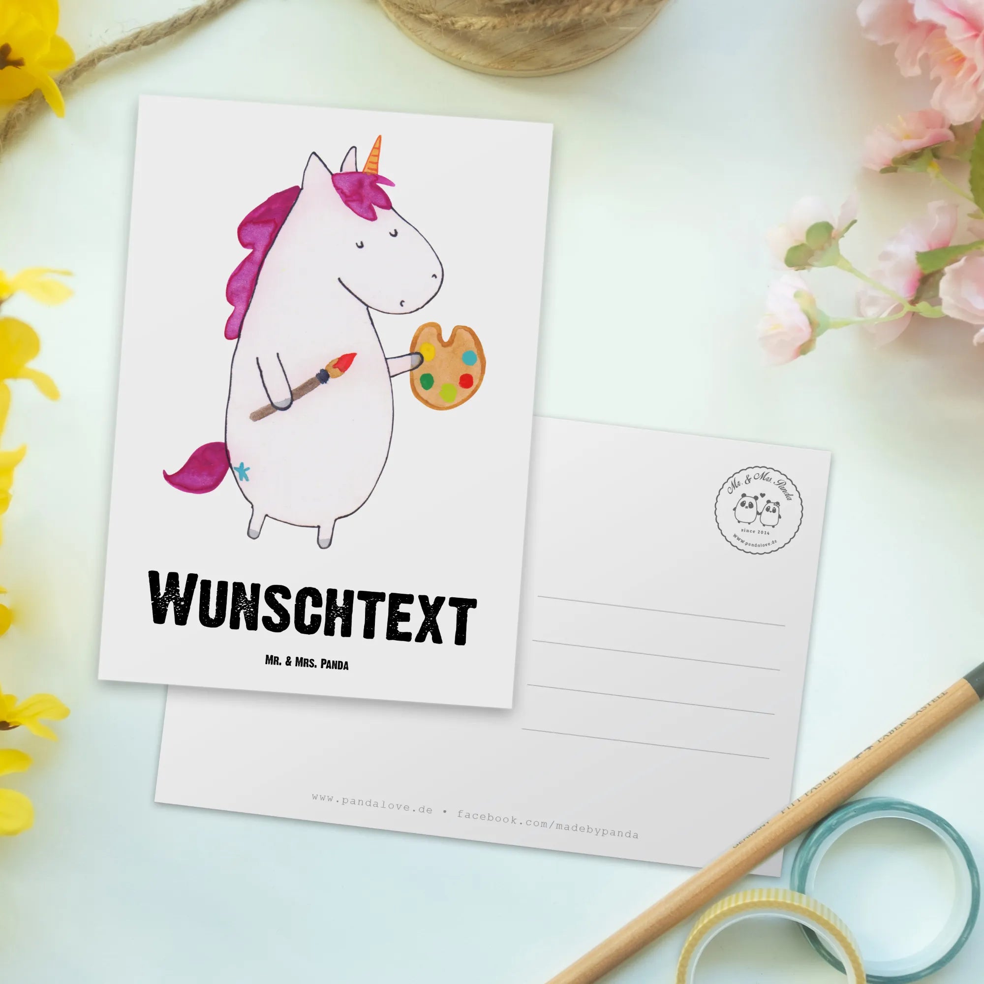 Entdecke die zauberhafte Welt der personalisierten Postkarte Einhorn Künstler von Mr. & Mrs. Panda! Diese einzigartige, personalisierte Postkarte bringt Farbe und Freude in jeden Briefkasten!