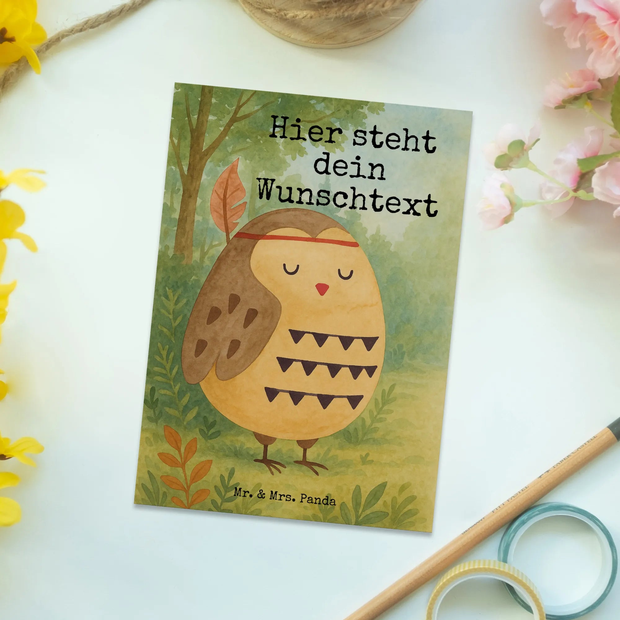 Personalisierte Postkarte „Eule Federschmuck“ – Das Leben ist ein Abenteuer.