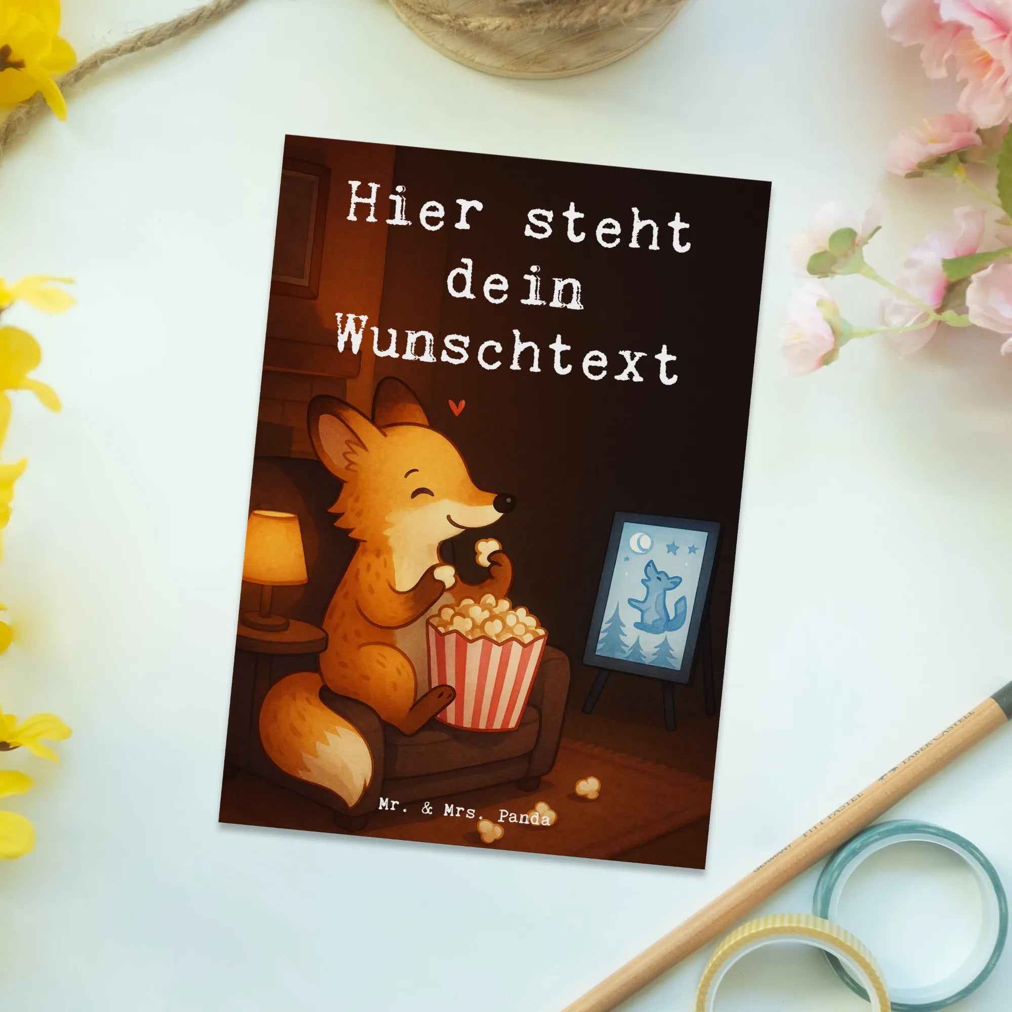 Postkarte personalisiert Fuchs Filme gucken Design