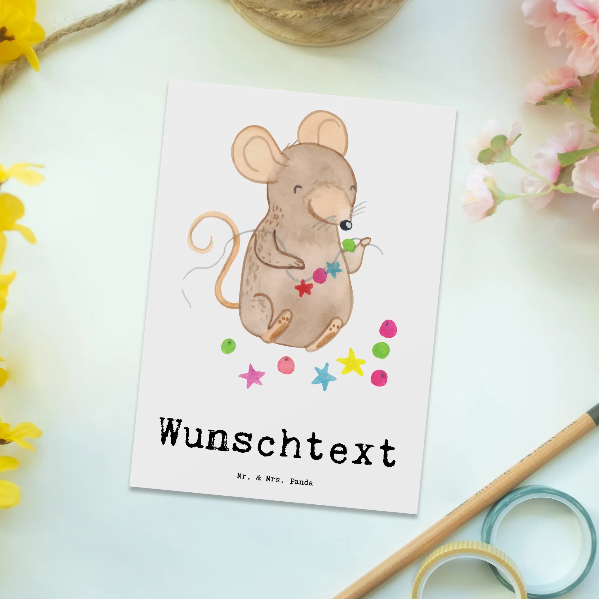 Bist du auf der Suche nach dem perfekten Geschenk für einen kreativen Menschen, der Schmuck selbst macht? Dann ist unsere personalisierte Postkarte "Maus Schmuck selber machen Tage" von Mr. & Mrs. Panda genau das Richtige für dich!