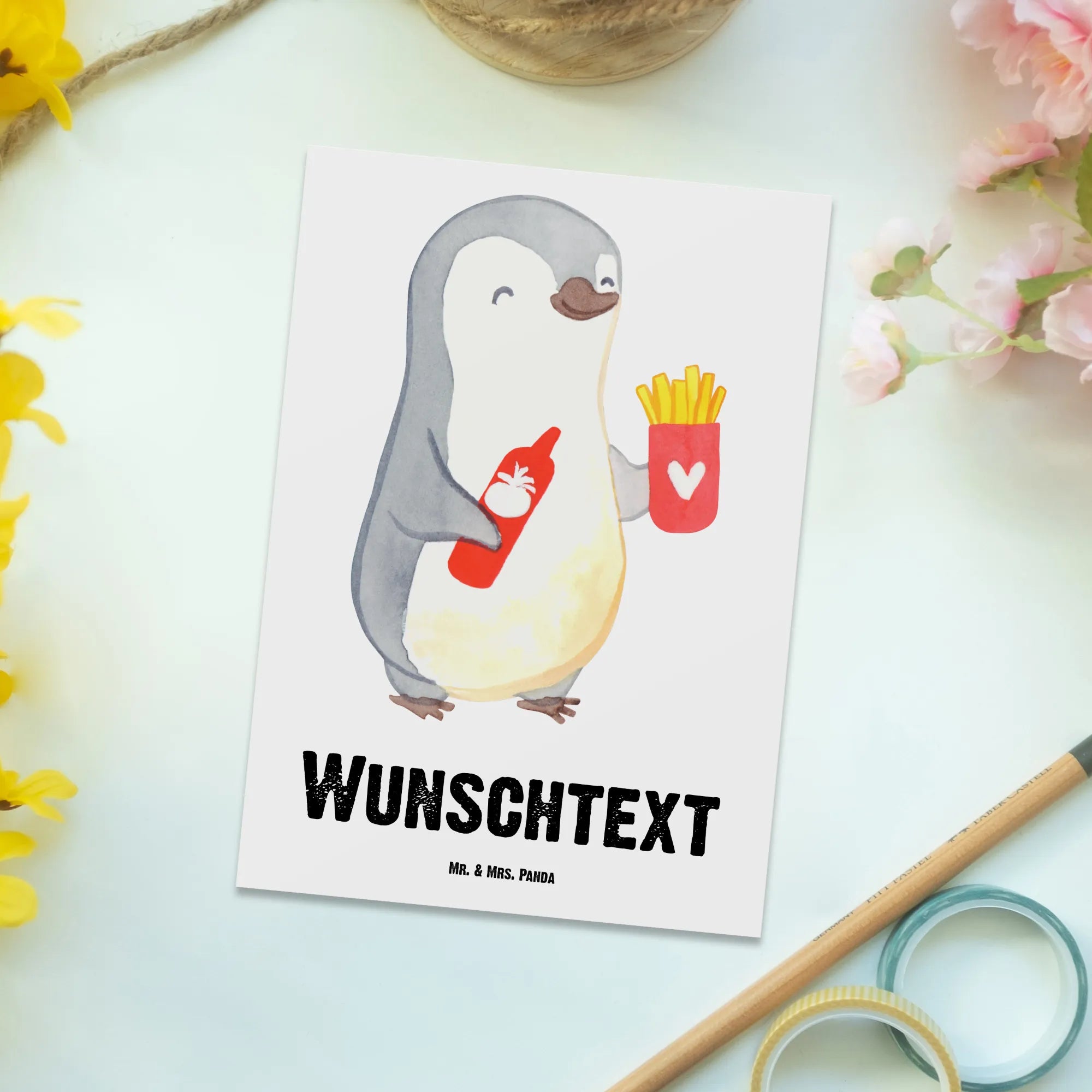 Entdecke die perfekte Art, deinem Lieblingsmenschen zu zeigen, wie viel er dir bedeutet – mit der personalisierten Postkarte 'Pinguin Pommes' aus der wunderbaren Kollektion Liebe von Mr. & Mrs. Panda! Diese einzigartige Grußkarte kombiniert niedliches Design und eine liebevolle Botschaft: "Mit dir würde ich sogar meine Pommes teilen." Egal ob für den Valentinstag, den Hochzeitstag, oder einfach so – diese Postkarte ist der ideale Liebesbeweis für jeden Anlass.