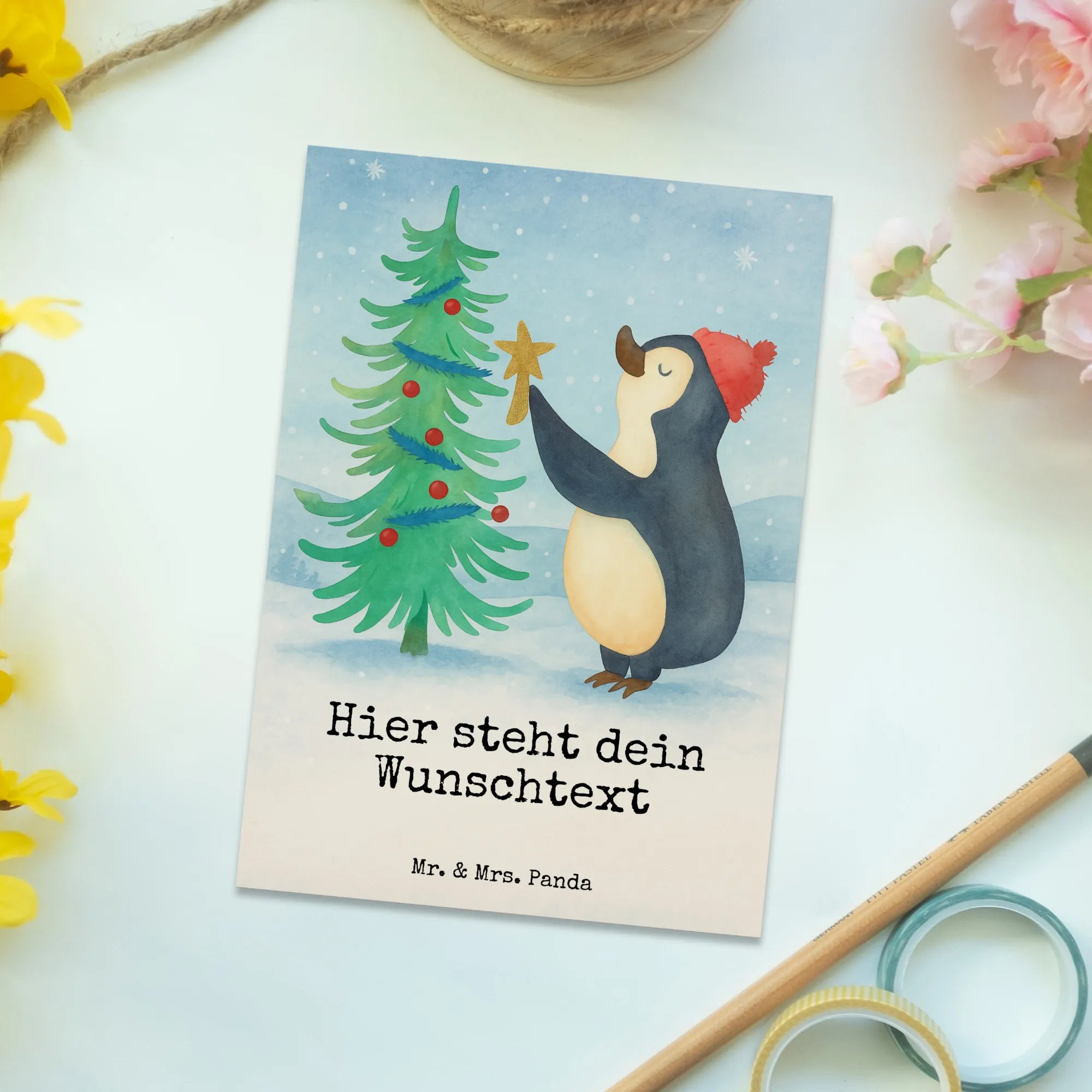 Personalisierte Postkarte Pinguin Weihnachtsbaum Design