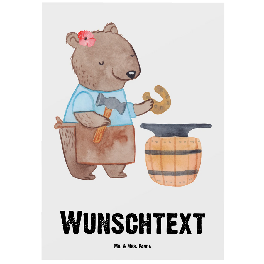 Zur Berufe-Kollektion von Mr. & Mrs. Panda gehört diese Postkarte ebenfalls und bietet zahlreiche Anlässe, bei denen du Freude schenken kannst. Die Schmiedin mit Herz strahlt unglaublich viel Charme aus und macht diese Karte zu einem Must-Have für jede Schmiedin oder jeden Schmied.