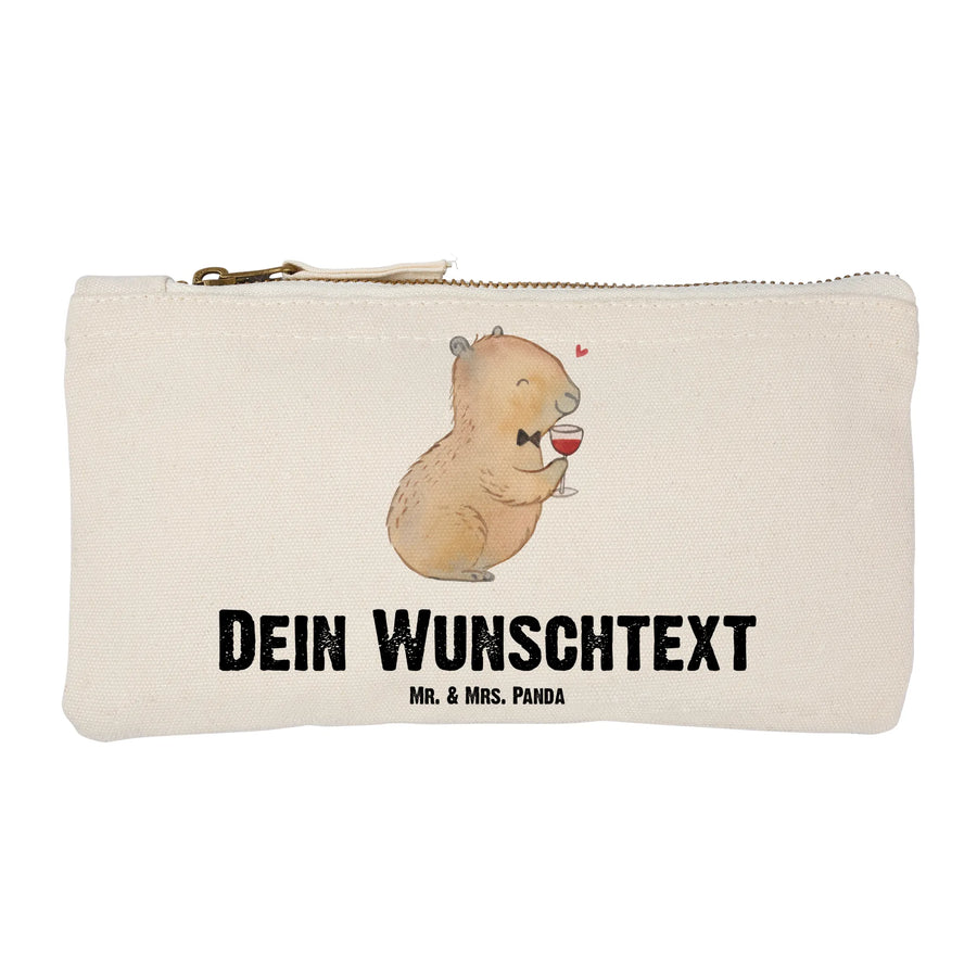 Handgezeichnet von Mrs. Panda, zeigt das entzückende Motiv ein fröhliches Capybara, das genüsslich ein Glas Wein hält und mit seiner schicken Fliege einen eleganten Eindruck hinterlässt. Egal, ob du dich selbst beschenken oder einen lieben Menschen überraschen möchtest, diese personalisierte Schminktasche erfüllt jeden Wunsch.