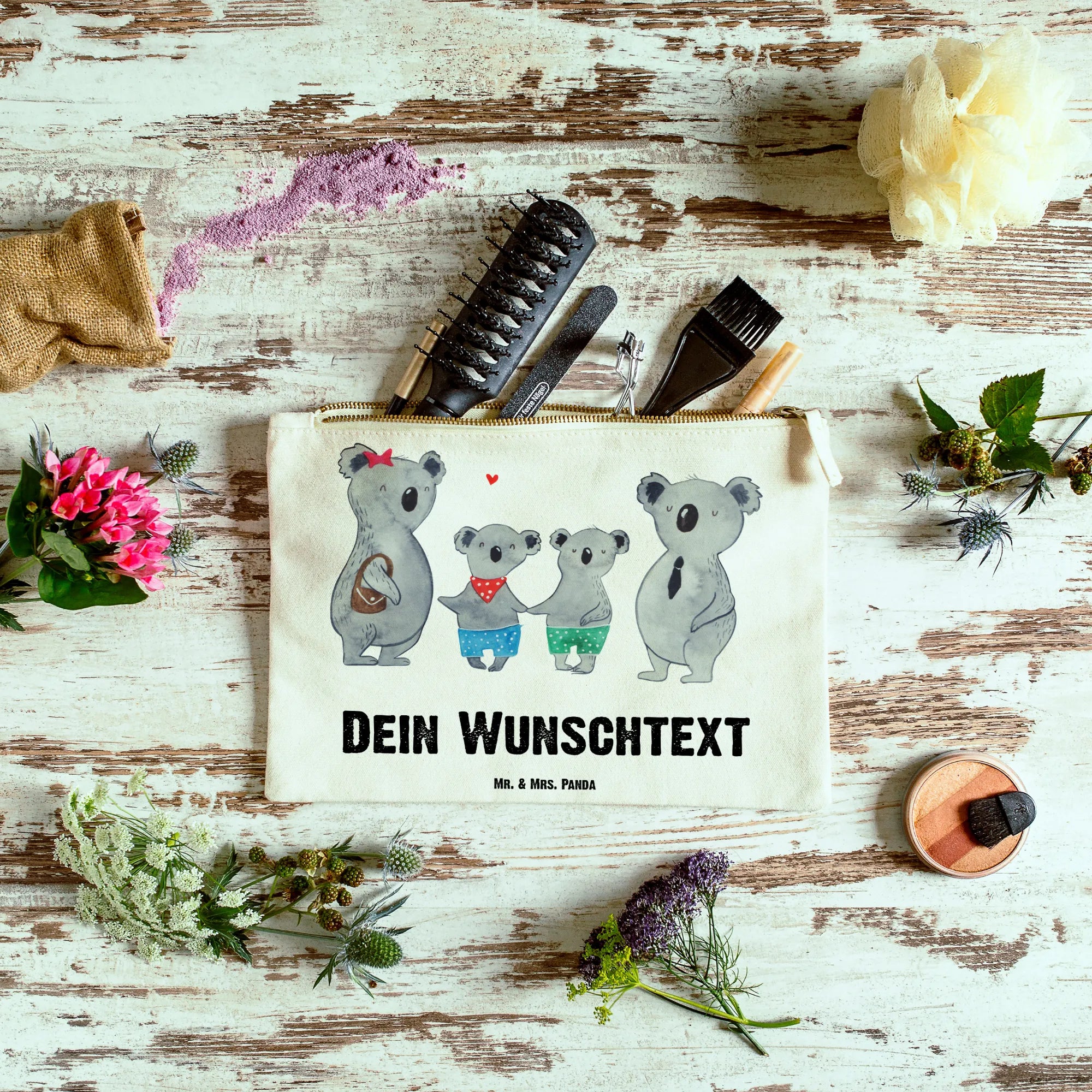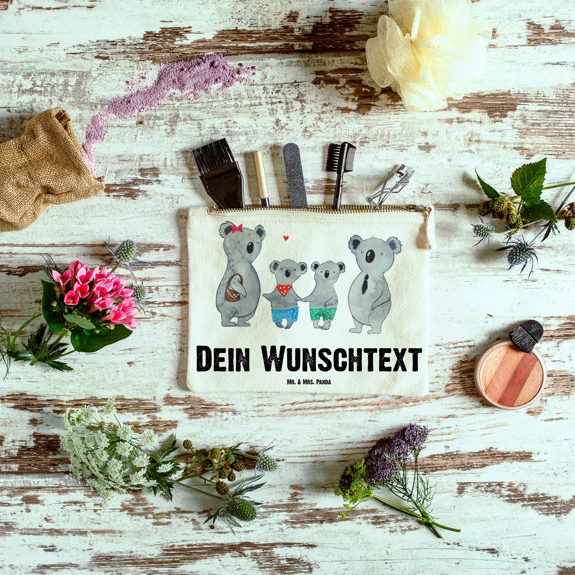Entdecke die bezaubernde personalisierte Schminktasche »Koala Familie zwei« von Mr. & Mrs. Panda! Ob du auf der Suche nach einem einzigartigen Geschenk für deine Liebsten bist oder dich selbst verwöhnen möchtest, diese Kosmetiktasche ist die perfekte Wahl.