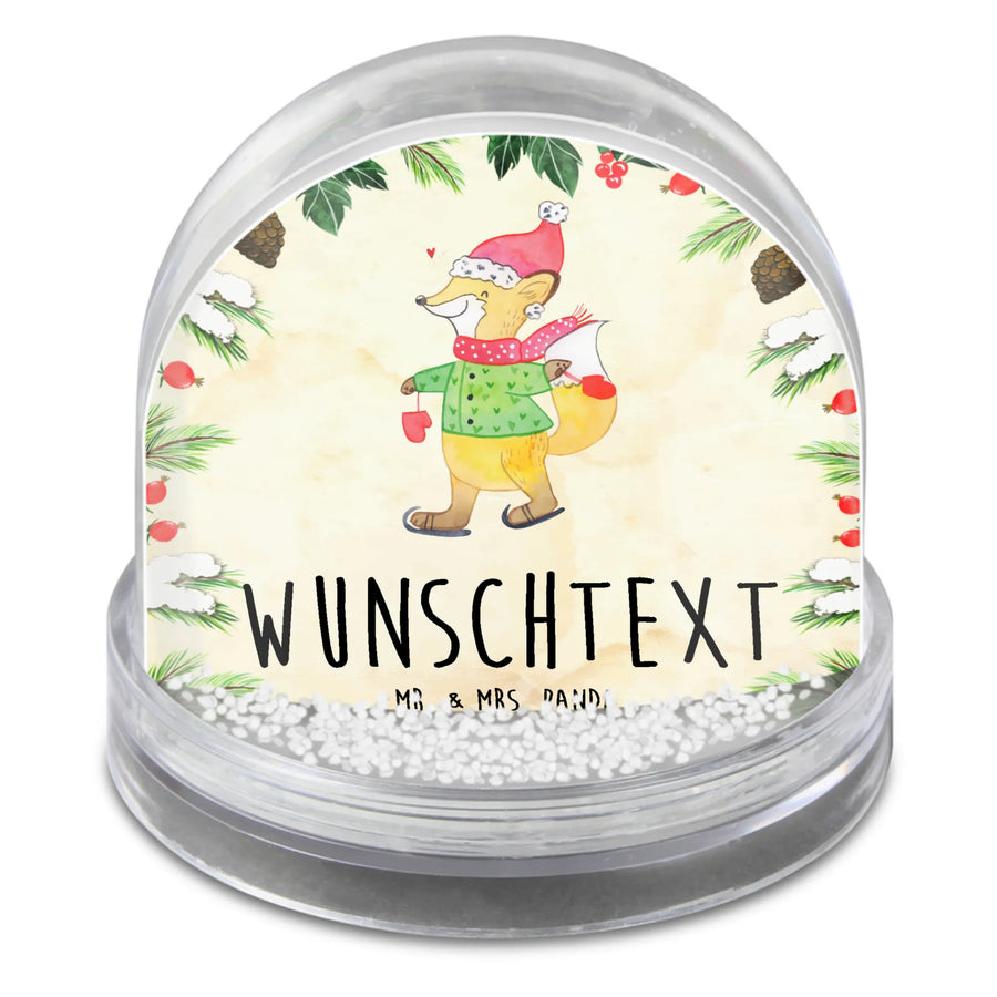 Personalisierte Schneekugel Fuchs Schlittschuhe - Naturpapier
