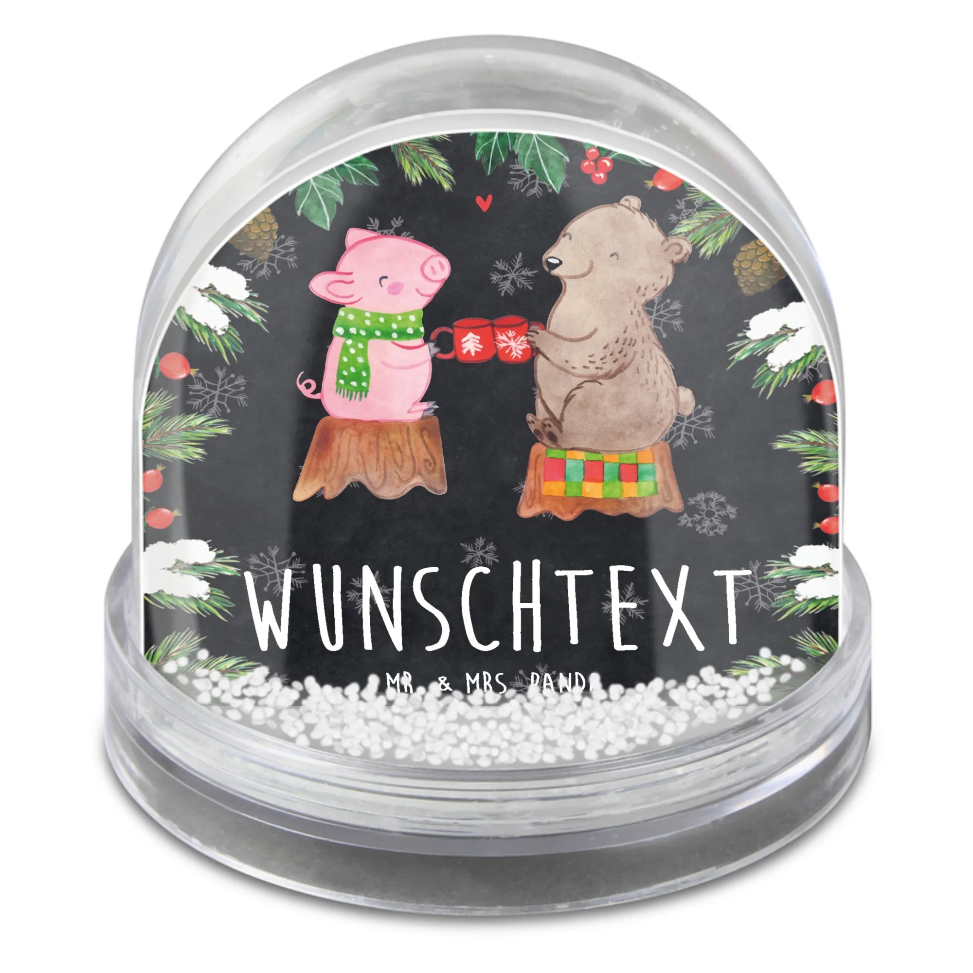 Schnee, Glühwein und bezaubernde Erinnerungen – die personalisierte Schneekugel "Glühschwein Sause" von Mr. & Mrs. Panda bringt die zauberhafte Winterstimmung in dein Zuhause. Mit einem liebevollen Motiv, das einen Bären und ein knuffiges Schweinchen zeigt, die anstoßen und sich 'Alles Gute' wünschen, ist diese Schneekugel das ideale Geschenk für Weihnachten, Nikolaus oder einfach nur für einen lieben Menschen.