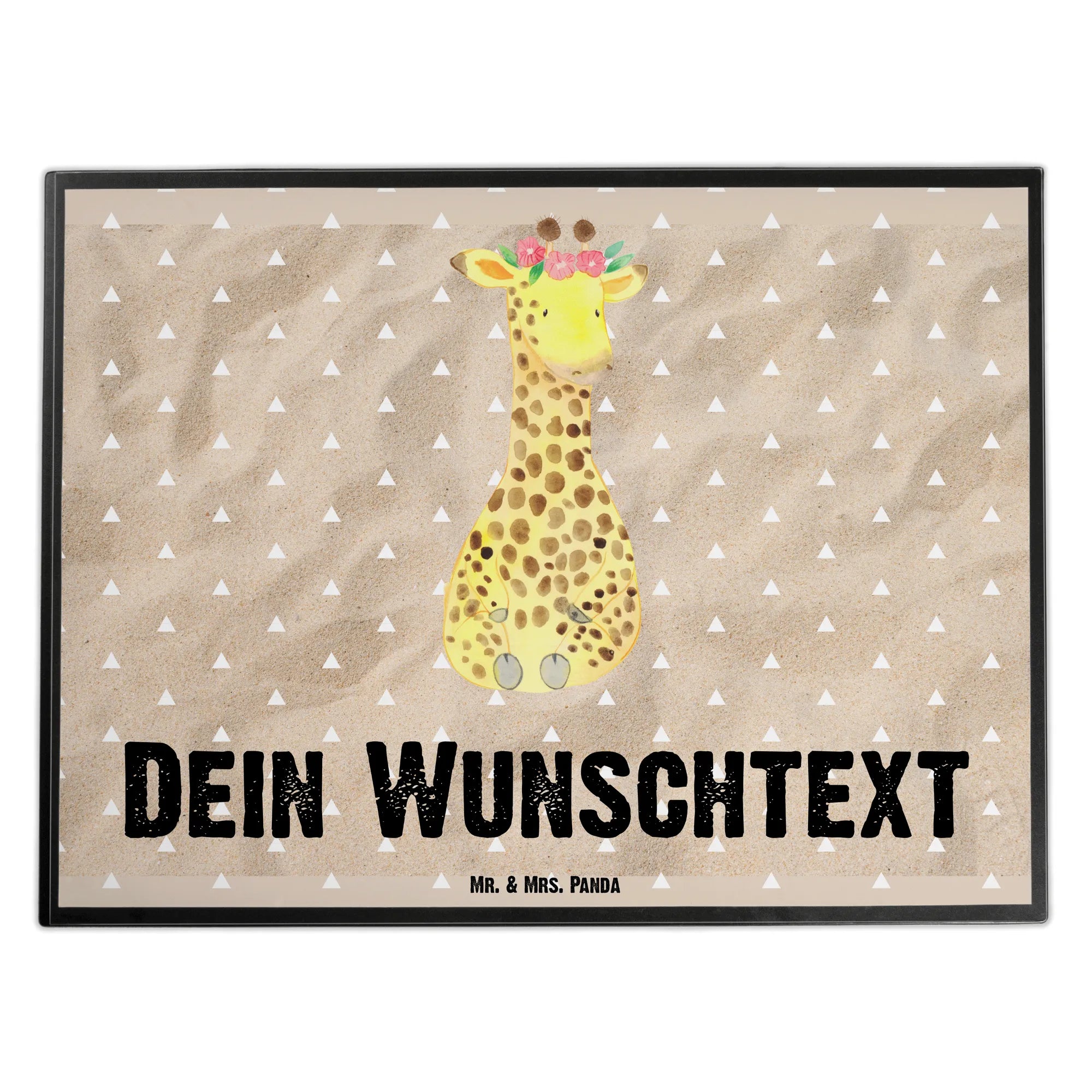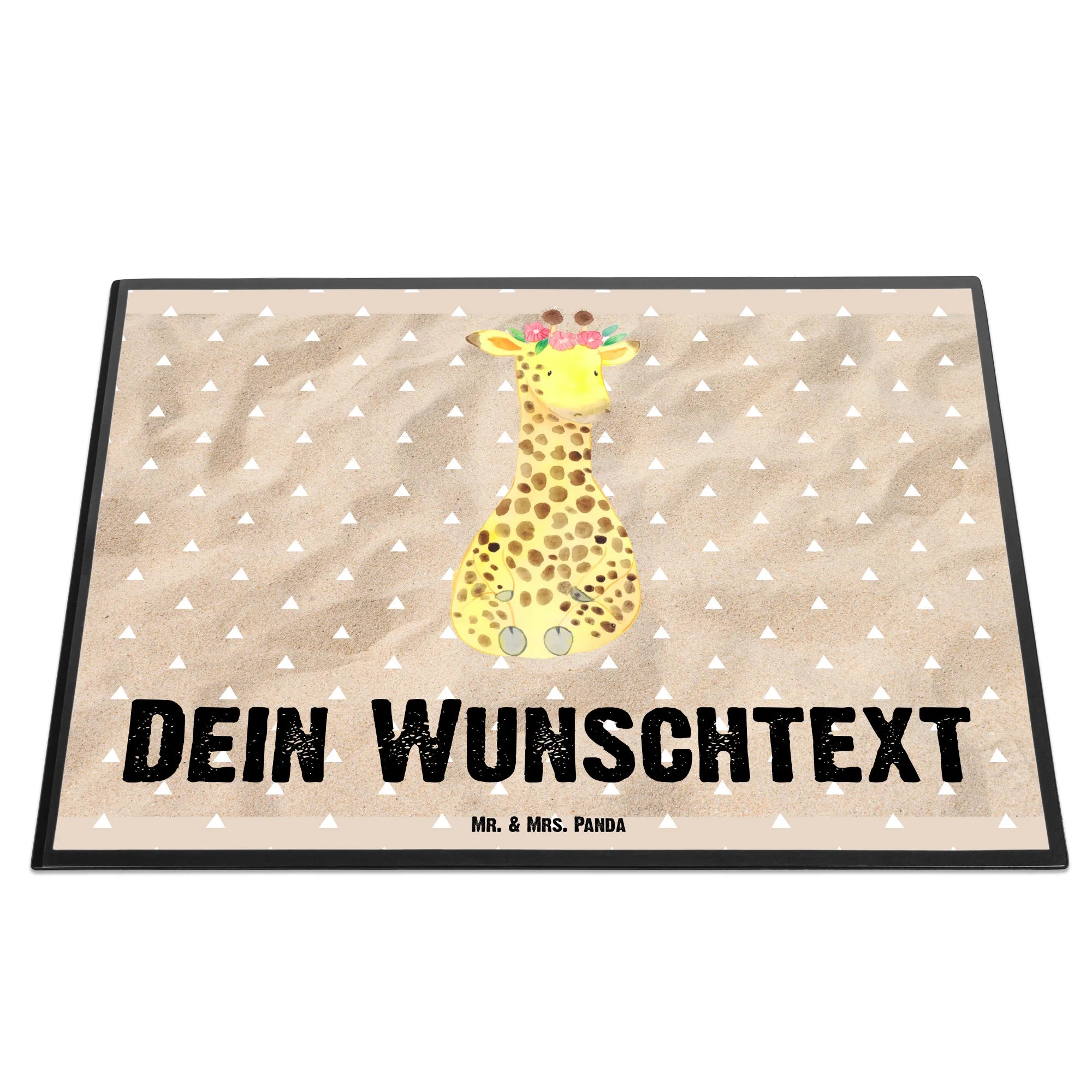 Suchst du nach dem perfekten Geschenk für kreative Köpfe und Abenteurer? Hier kommt die personalisierte Schreibtischunterlage von Mr. & Mrs. Panda mit dem zauberhaften Giraffe Blumenkranz Motiv!