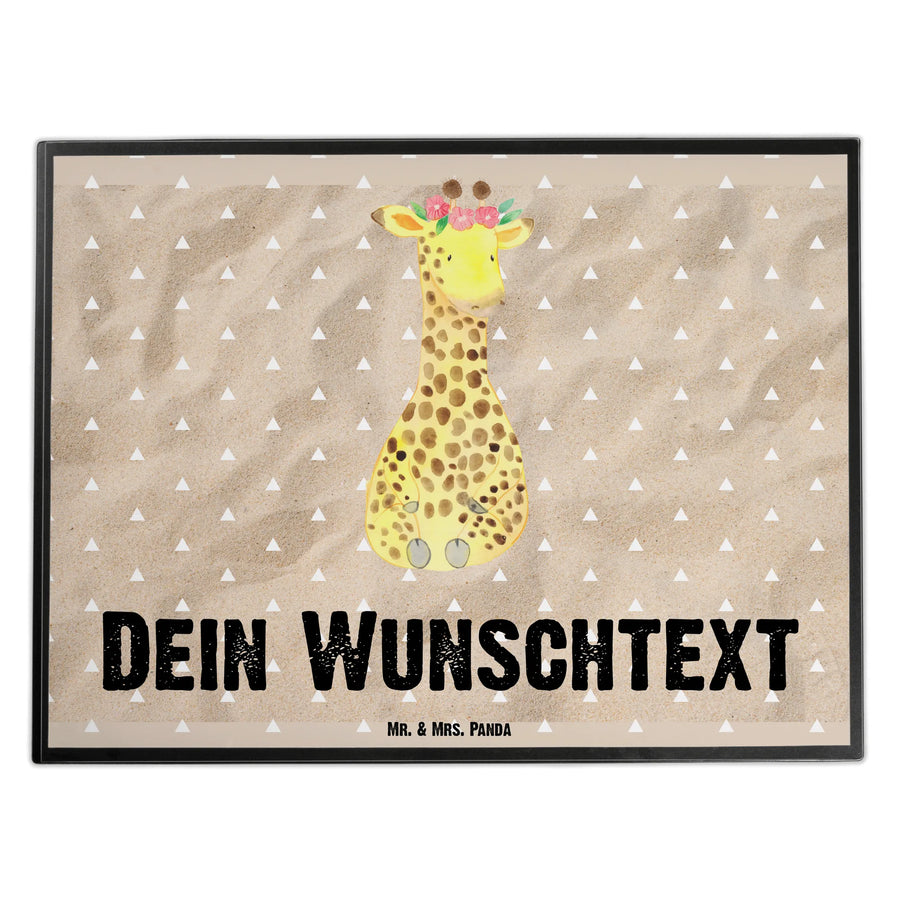 Personalisierte Schreibtischunterlage Giraffe Blumenkranz