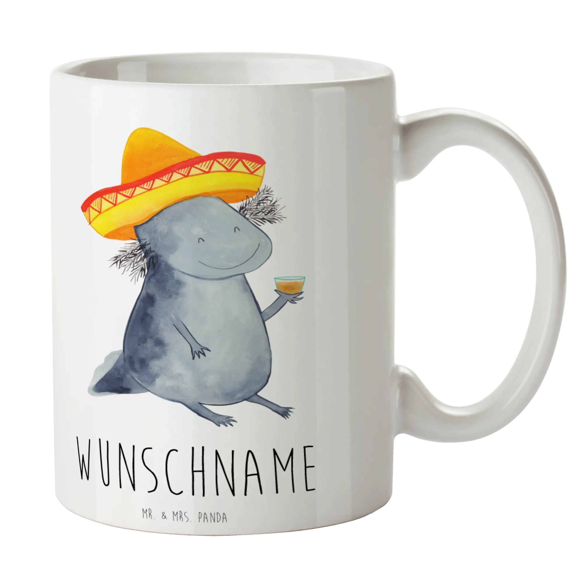 Diese wunderschöne Keramiktasse kannst du mit deinem Wunschnamen individuell gestalten und so zu einem ganz persönlichen Geschenk machen. Der niedliche Axolotl, der einen Sombrero trägt und ein Tequila-Glas in der Flosse hält, bringt sofort ein Lächeln auf die Lippen und erinnert uns daran, das Leben zu genießen.