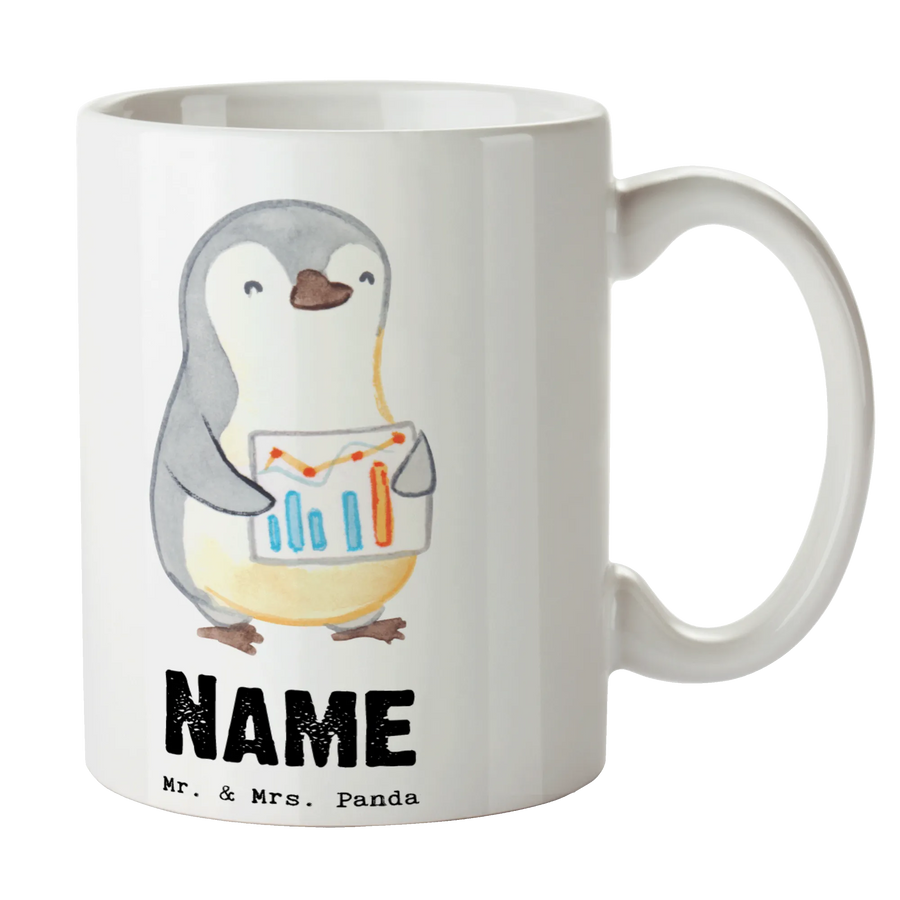 Die Tasse zeigt einen niedlichen Pinguin, der ein Diagramm in der Hand hält, und kommt mit dem humorvollen Slogan "Du bist nur ein halber Mensch, wenn du kein Finanzcontroller bist!". Diese liebevoll gestaltete Tasse lässt sich ganz einfach mit deinem Wunschnamen personalisieren, damit es ein wirklich einzigartiges Geschenk wird. Sie hat eine Füllmenge von 300 ml und ist mikrowellengeeignet sowie spülmaschinenfest.