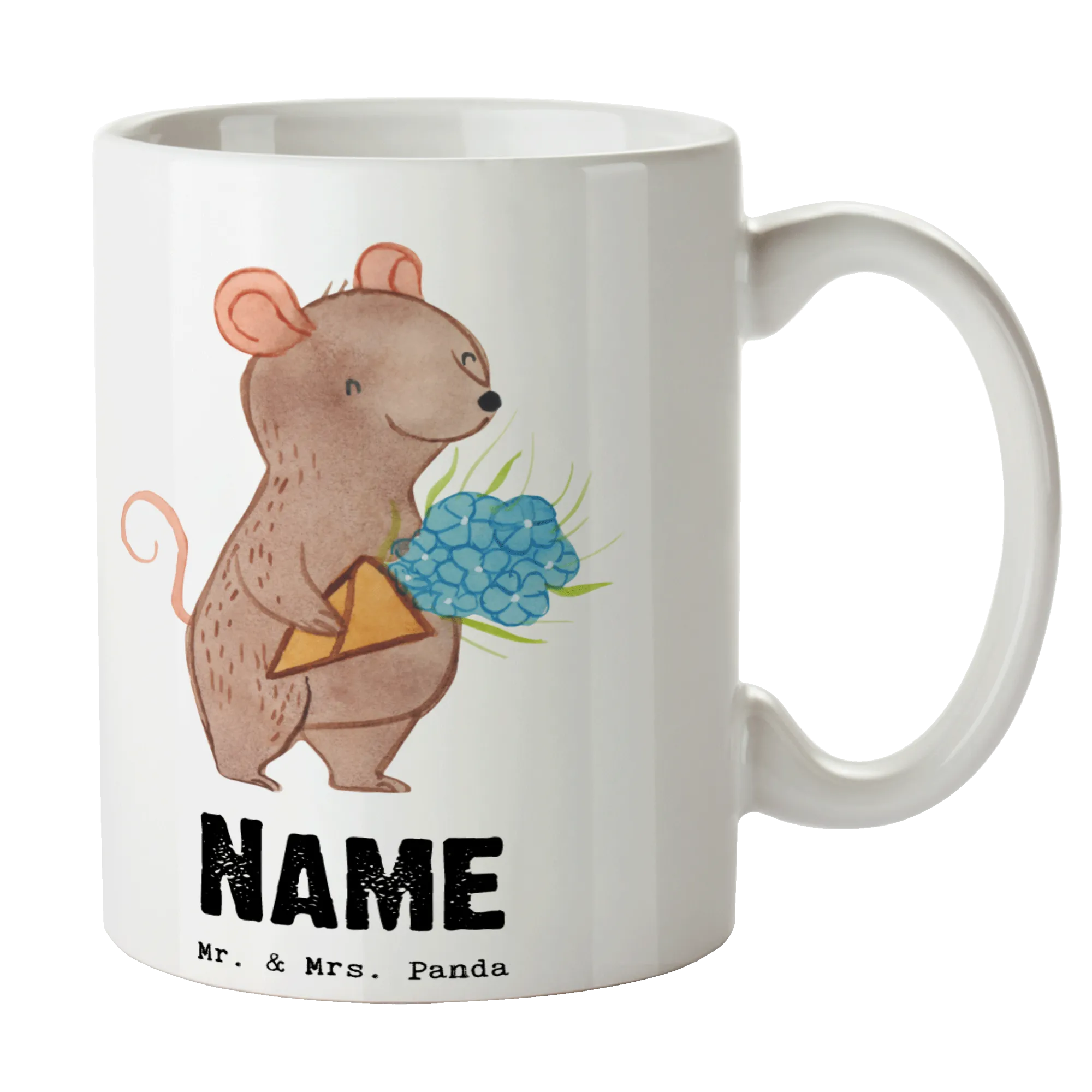 Unsere Tasse aus der Berufe-Kollektion von Mr. & Mrs. Panda zeigt eine niedliche Maus mit einem großen, bunten Blumenstrauß und den charmanten Spruch: „Du bist nur ein halber Mensch, wenn du kein Florist bist.“ Dieses Motiv ist perfekt für Floristen, Blumenhändler, Auszubildende in der Floristik und alle, die Blumen lieben. Die Tasse lässt sich mit deinem Wunschname personalisieren und wird so zum ganz persönlichen Unikat.