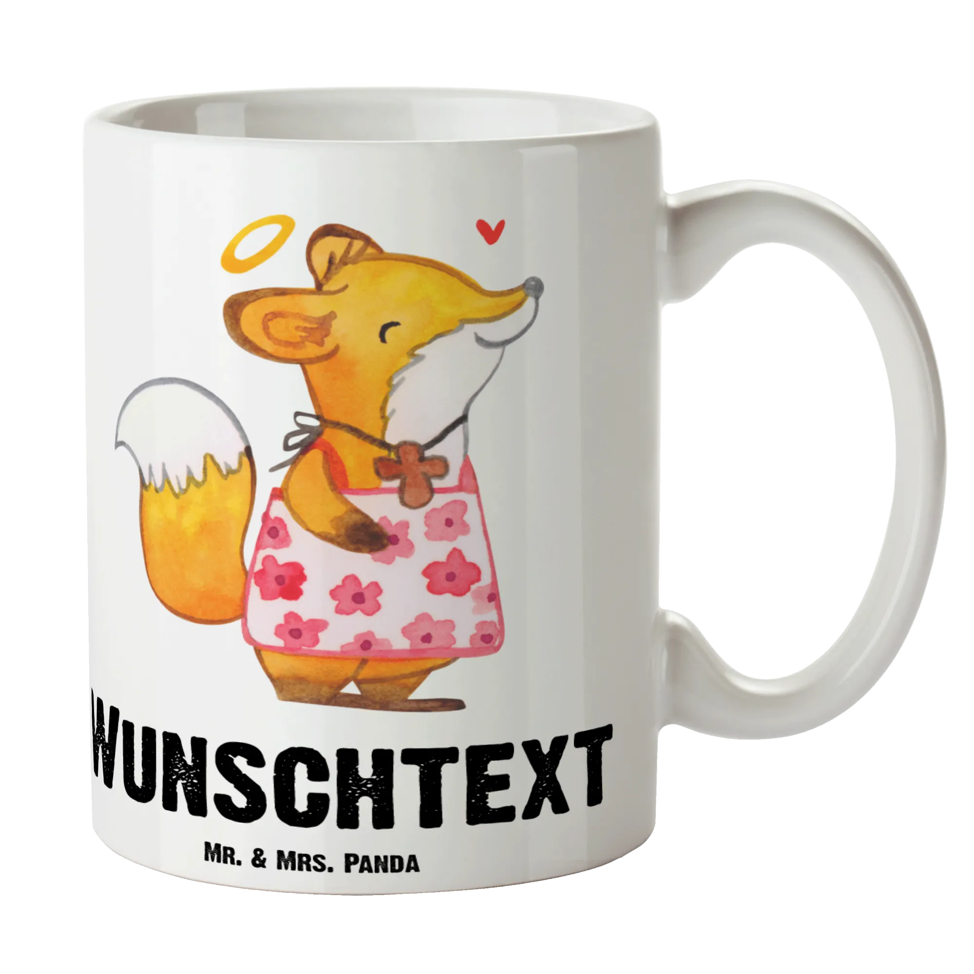 Die personalisierte Tasse mit dem süßen Fuchs-Motiv zur Konfirmation ist das perfekte Geschenk für Mädchen, die diesen besonderen Schritt in ihrem Leben feiern. Mit liebevollen Details, wie dem niedlichen Fuchs im Blumenkleid, der eine Halskette mit einem Kreuz trägt und einem Heiligenschein, zeigt diese Tasse nicht nur ihre Einzigartigkeit, sondern auch die Verbindung zu ihrem Glauben.