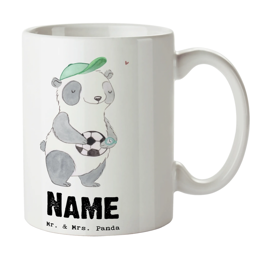 Die personalisierte Tasse "Fußballtrainer mit Herz" von Mr. & Mrs. Panda ist das perfekte Geschenk für jeden Fußballtrainer, egal ob zum Berufsabschied, Jubiläum oder einfach als Dankeschön für die unverzichtbare Unterstützung auf dem Platz. Mit einem niedlichen Panda, der einen Ball in der Hand hält und dem eingängigen Spruch "Du bist nur ein halber Mensch, wenn du kein Fußballtrainer bist", bringt diese Tasse ein Lächeln auf jedes Gesicht.