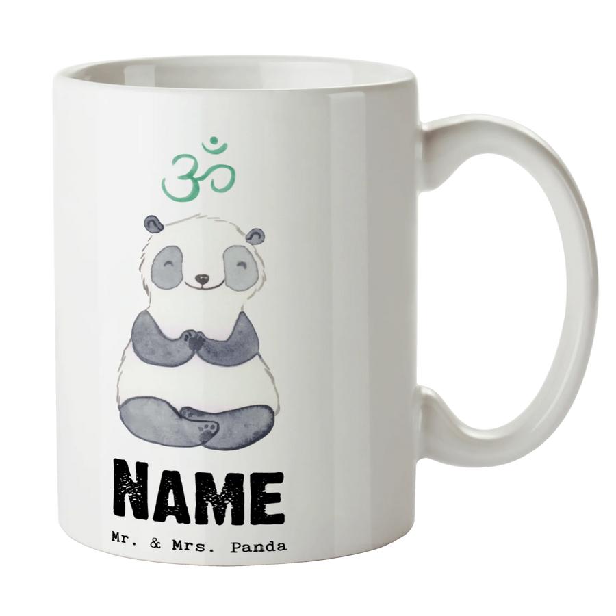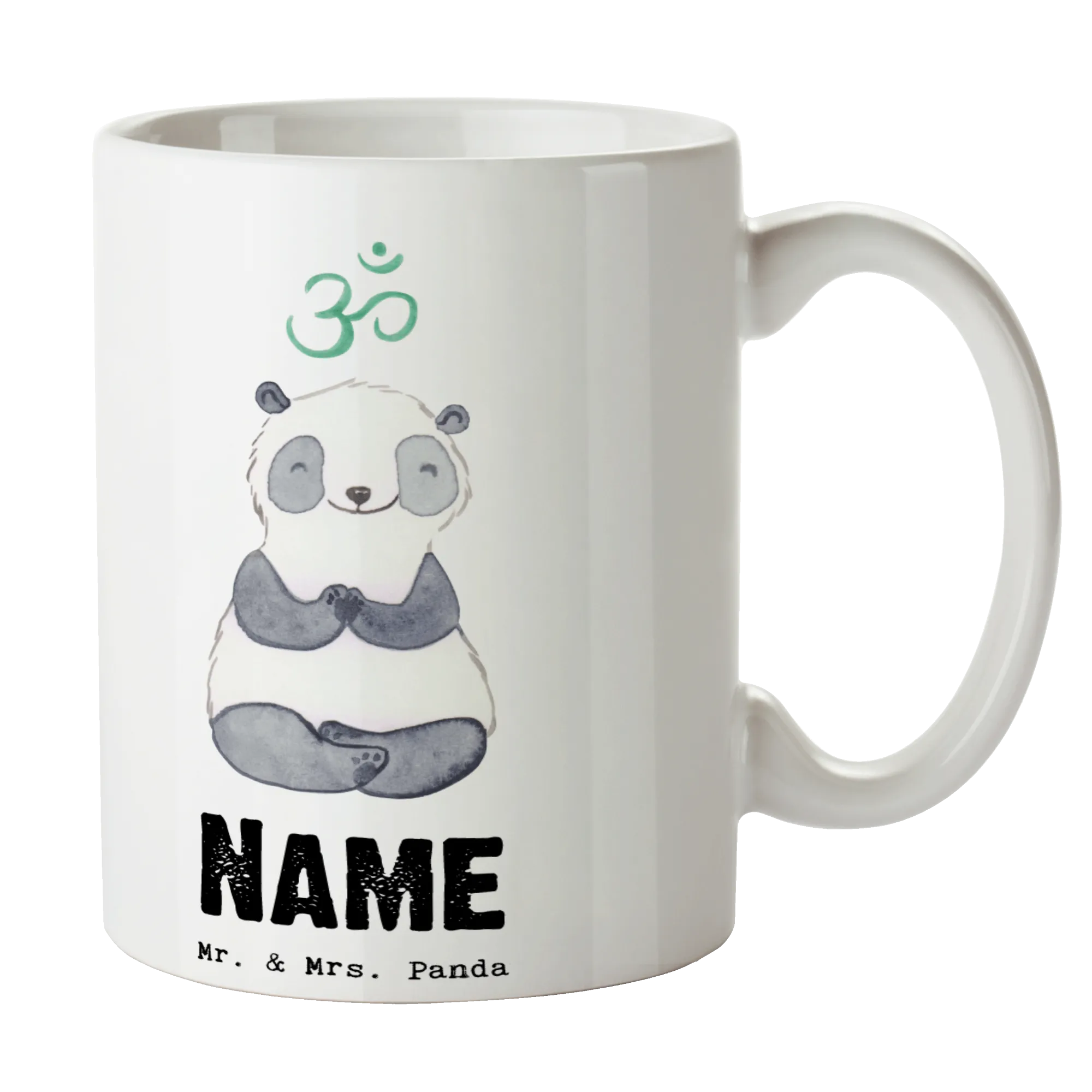 Die personalisierte Tasse "Panda Meditieren Tage" von Mr. & Mrs. Panda ist das perfekte Geschenk für alle, die Entspannung und Meditation lieben.