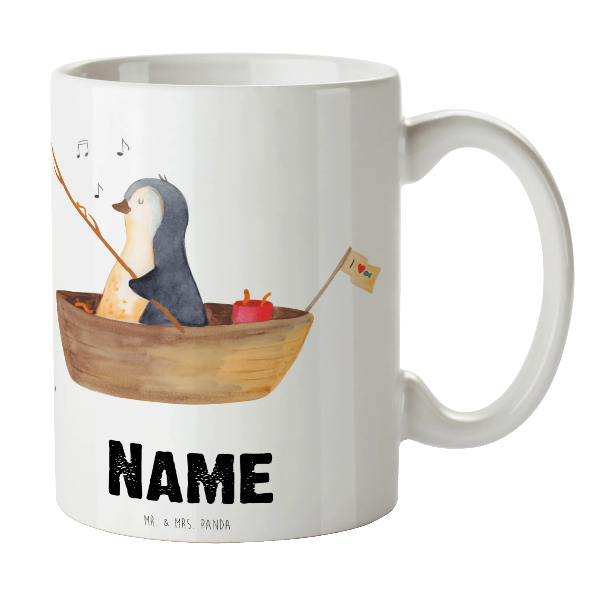 Wenn du auf der Suche nach einem ganz besonderen Geschenk für Pinguinliebhaber bist, dann ist unsere personalisierte Tasse mit dem liebevollen Motiv "Pinguin Angelboot" genau das Richtige! Diese wunderschöne Keramiktasse von Mr. & Mrs. Panda ist nicht nur ein Blickfang, sondern auch praktisch. Sie ist spülmaschinenfest und mikrowellengeeignet, sodass du sie ganz unbeschwert im Alltag nutzen kannst. Mit einer Füllmenge von 300 ml und einer besonders glänzenden Oberfläche weist sie eine hohe Qualität auf und hält bis zu 2000 Waschgängen stand, ohne dass ihr Design verblasst.