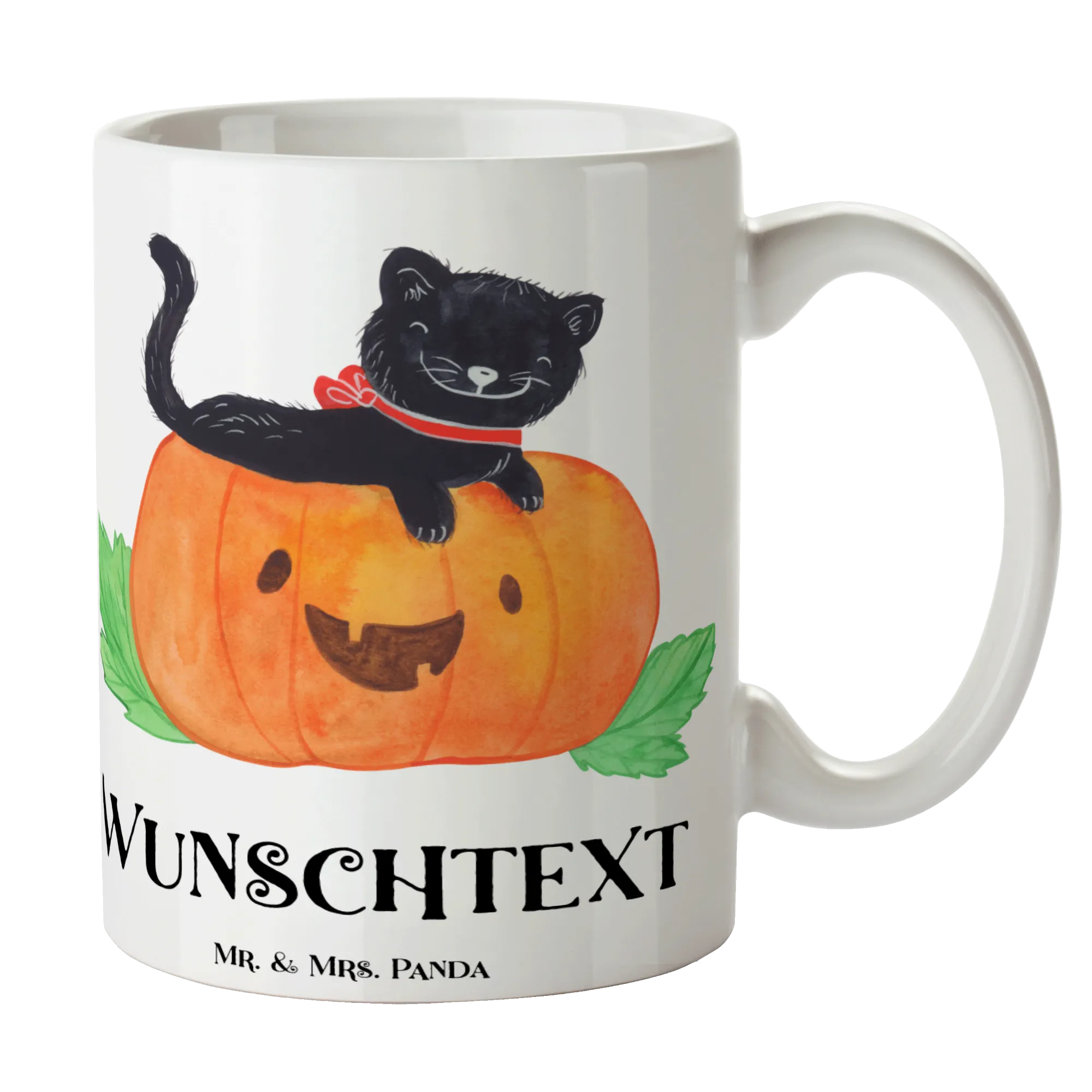 Die personalisierte Tasse Schwarze Katze aus der Halloween Kollektion von Mr. & Mrs. Panda ist das perfekte Geschenk für alle Liebhaber des Gruseligen und Niedlichen! 🎃 Diese wunderschöne, spülmaschinenfeste Keramiktasse begeistert mit ihrem liebevoll gestalteten Motiv einer süßen schwarzen Katze, die entspannt auf einem großen, lachenden Kürbis sitzt.