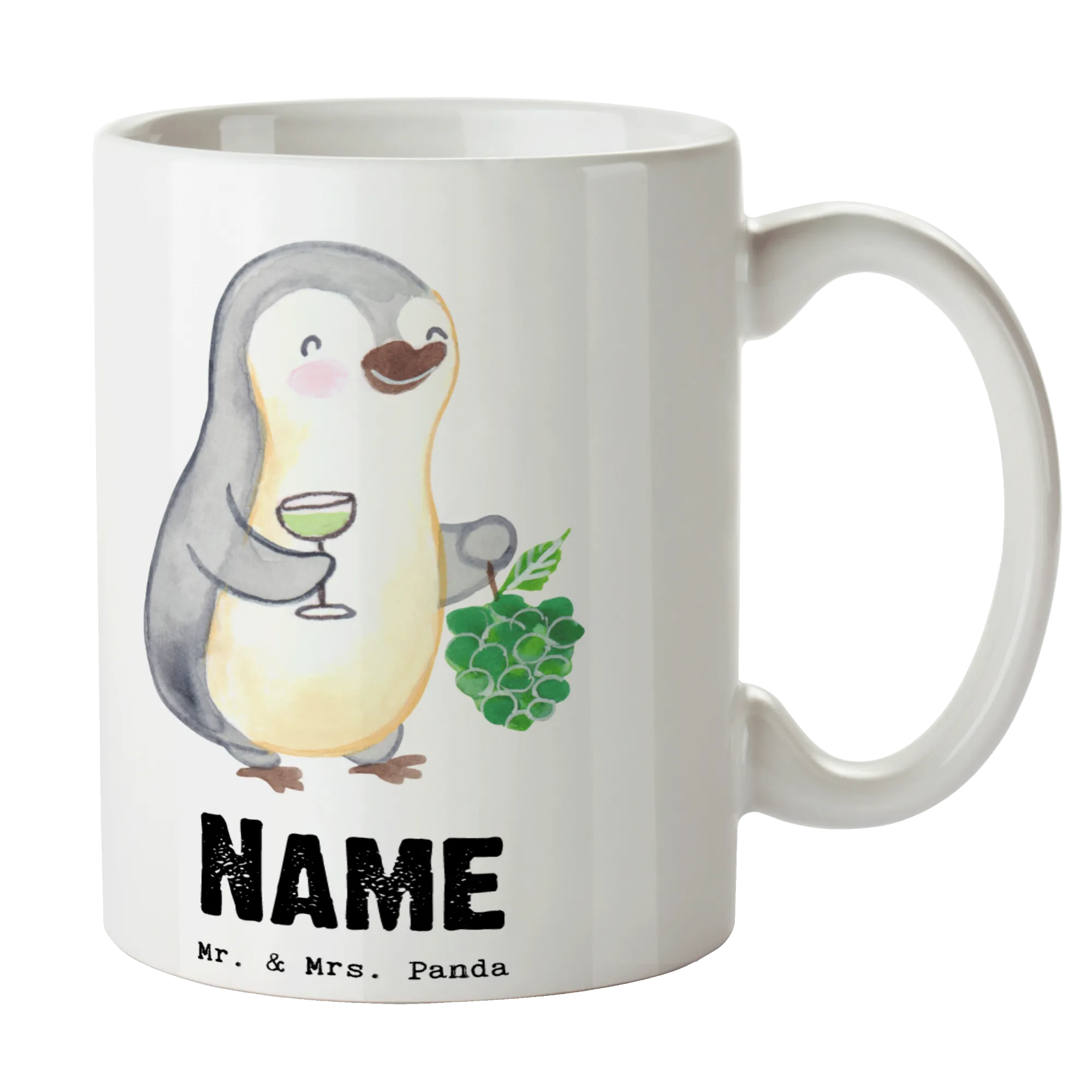Das süße Design zeigt einen niedlichen Pinguin, der in einer Hand Weintrauben und in der anderen ein gefülltes Weinglas hält. Und das Beste? Du kannst die Tasse mit deinem Wunschnamen oder Wunschtext personalisieren, was sie zu einem ganz besonderen Erinnerungsstück macht.