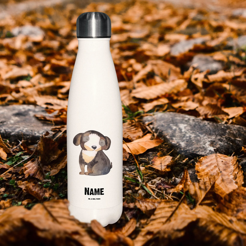 Die personalisierte Thermosflasche "Hund entspannt" aus der exklusiven Hunde Kollektion von Mr. & Mrs. Panda ist das perfekte Geschenk für alle Tierliebhaber und Hundebesitzer! Mit ihrem niedlichen Motiv eines entspannten schwarz-weißen Hundes und dem liebevollen Slogan "I love you to the moon and back" wird sie garantiert Herzen höherschlagen lassen.