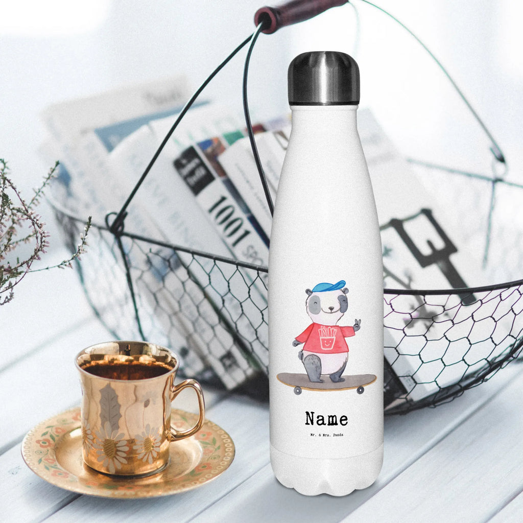 Diese Thermosflasche der Kollektion Hobby & Sport ist das ideale Geschenk für jeden, der Spaß am Skaten hat. 🎉 Verschenke Freude, Stil und Nachhaltigkeit mit dieser personalisierten Thermosflasche von Mr. & Mrs. Panda.