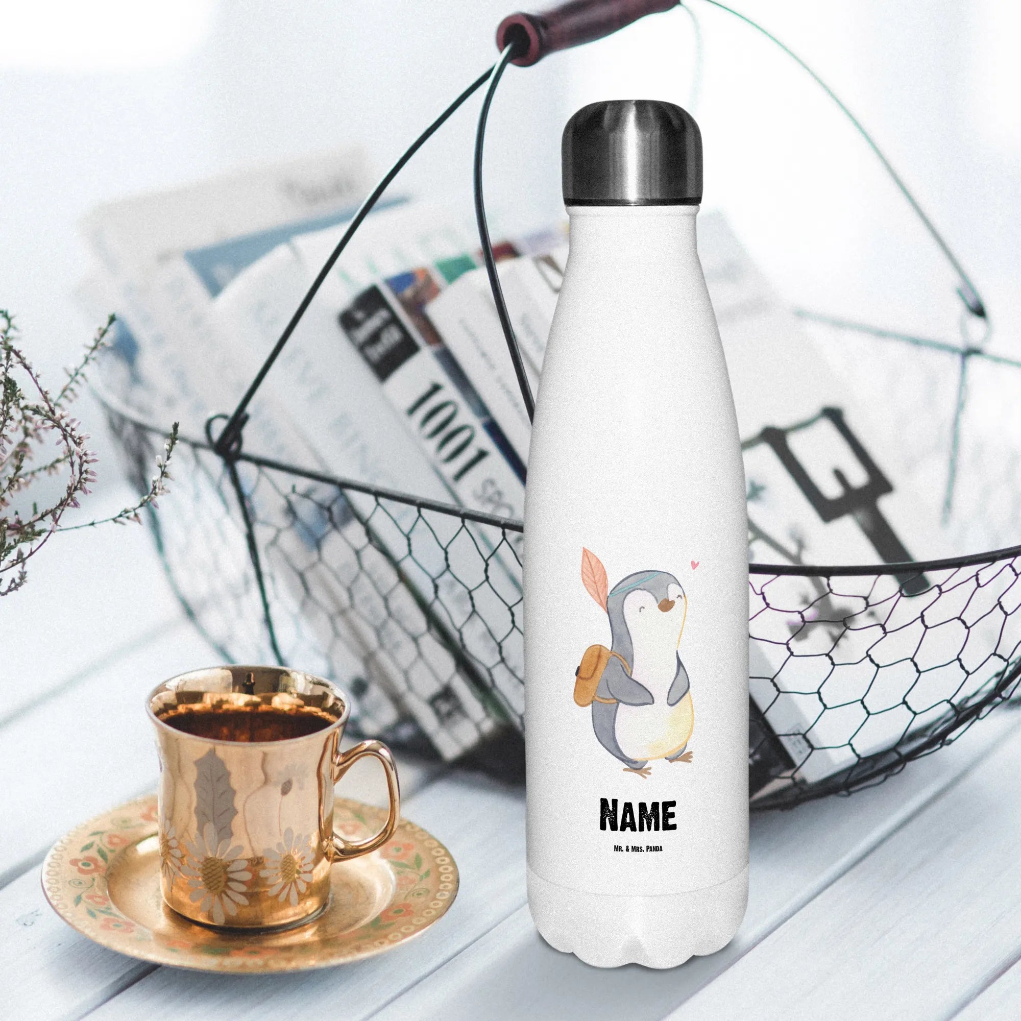 Mit der personalisierten Thermosflasche von Mr. & Mrs. Panda hast du immer dein Lieblingsgetränk dabei! Diese Flasche von 270 mm Höhe und einem Durchmesser von 70 mm bietet ein großzügiges Volumen von 500 ml. Ideal für alle, die ihren Kaffee thermisch isoliert unterwegs genießen wollen. Egal, ob du im Büro bist oder bei einem Ausflug in der Natur, diese robuste und leichte Flasche ist der perfekte Begleiter. Die Doppelwandkonstruktion hält deine Getränke lange heiß oder kalt. Der praktische Schraubverschluss sorgt dafür, dass alles sicher bleibt. Pflege sie mit etwas Sorgfalt – eine sanfte Handwäsche ist die beste Methode, da sie nicht spülmaschinengeeignet ist. Du kannst sie sogar mit deinem Wunschnamen personalisieren, og das sie zu einem einzigartigen und persönlichen Geschenk macht, das von Herzen kommt.