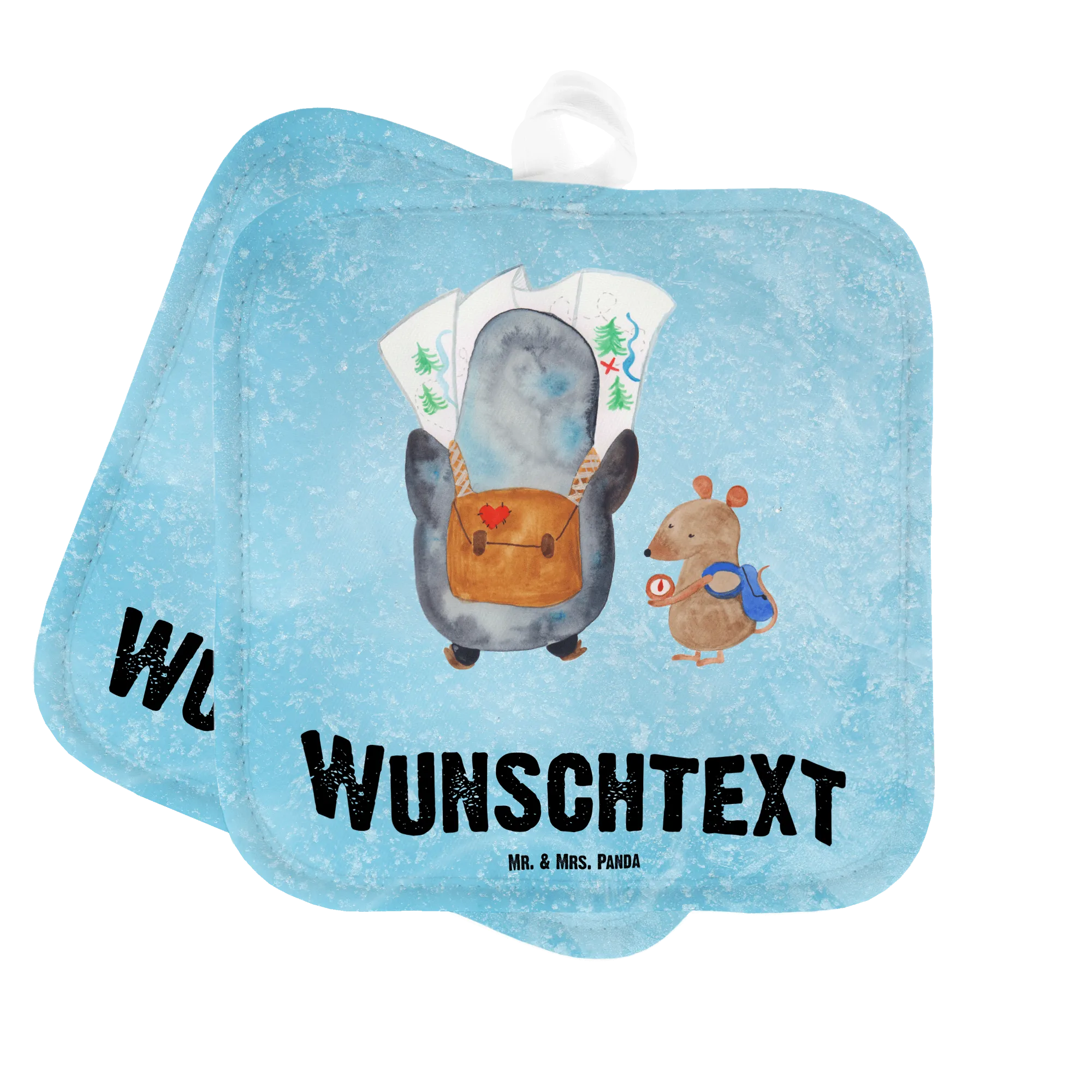 Personalisierte Topflappen Pinguin & Maus Wanderer