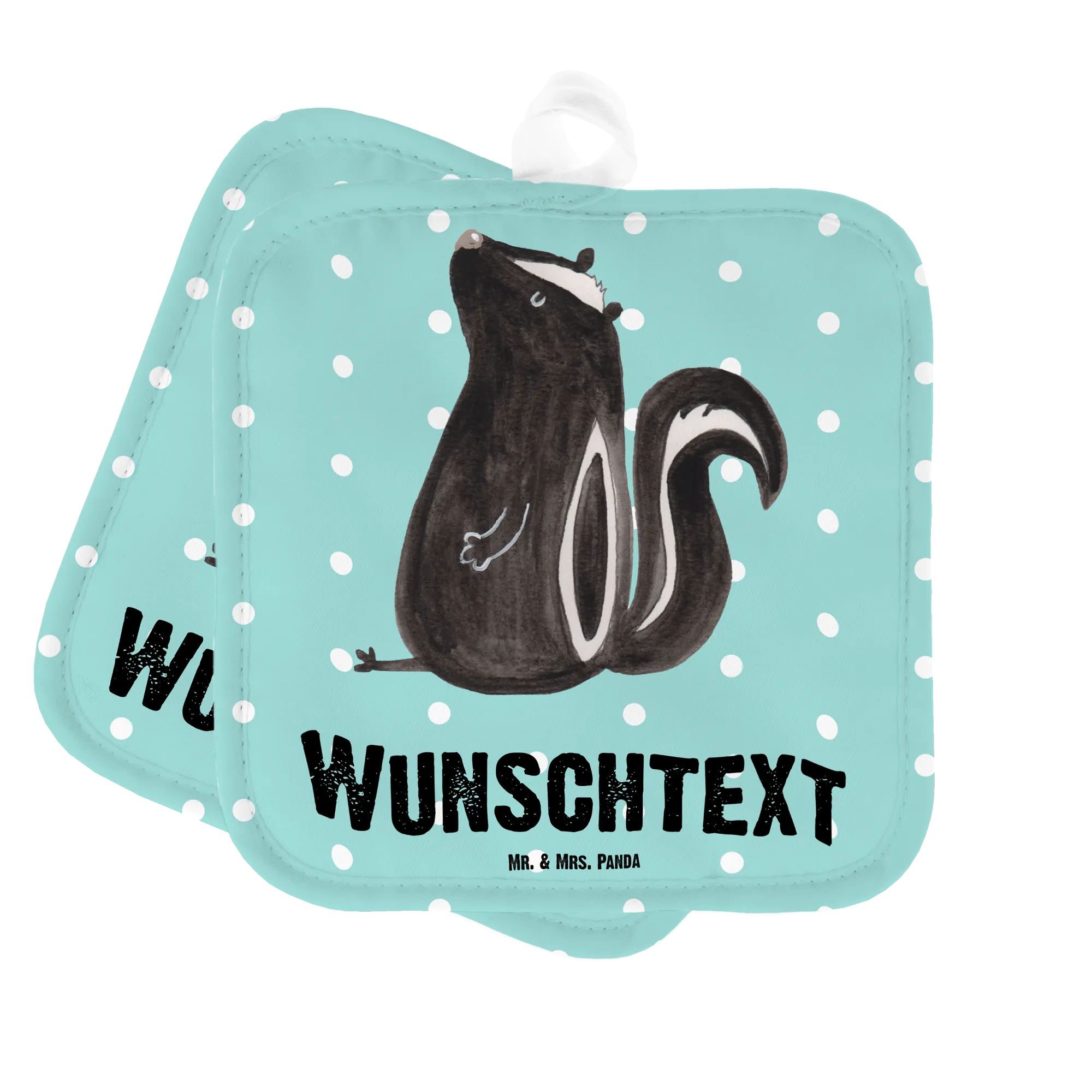 Mach dein Kochen zu einem besonderen Erlebnis und verschenke oder behalte diese wunderschönen, personalisierten Topflappen mit dem sitzenden Stinktier – ein kleines Stück Natur für deinen Alltag, das dir Freude bringt und gleichzeitig praktisch ist!