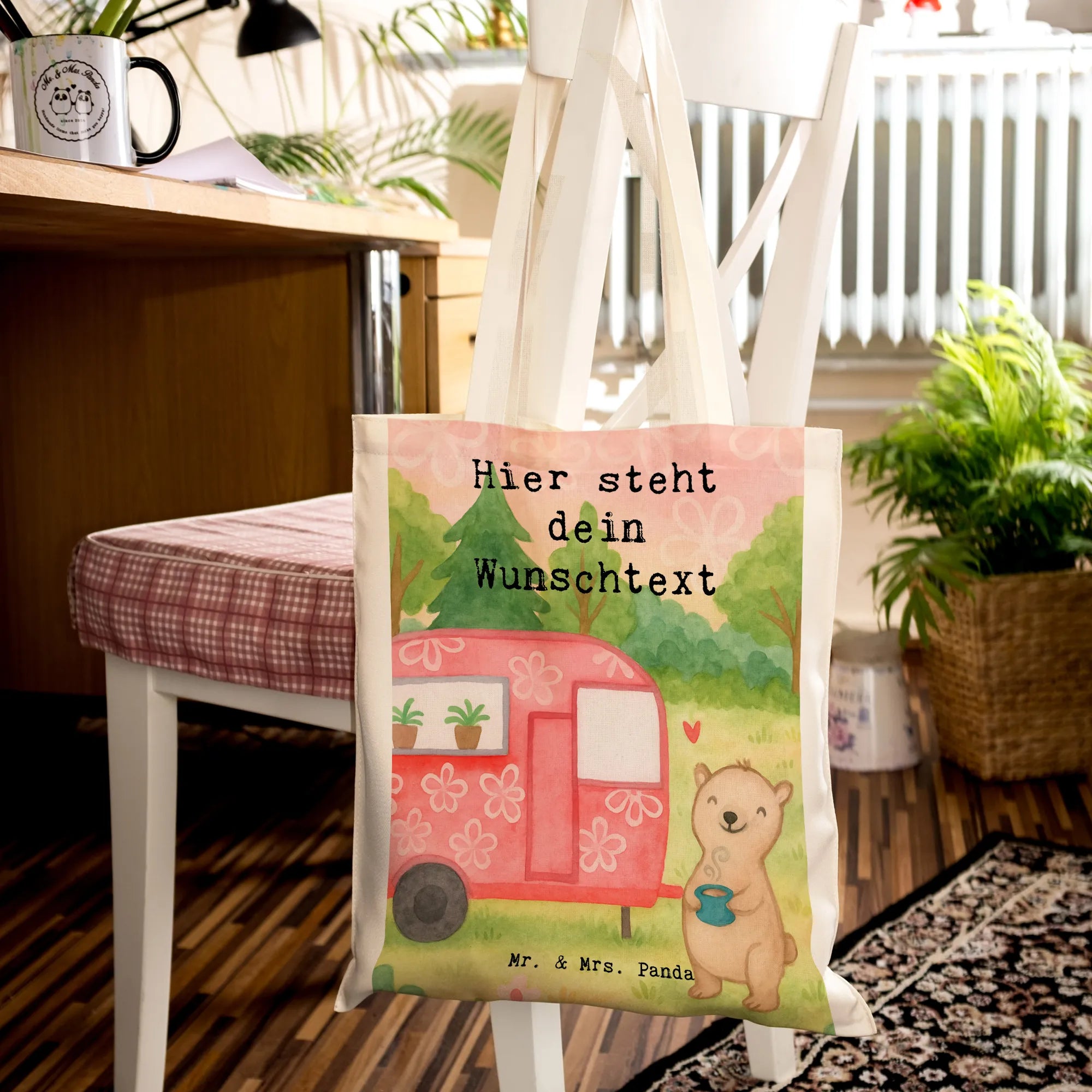 Personalisierte Tragetasche Bär Camper Design