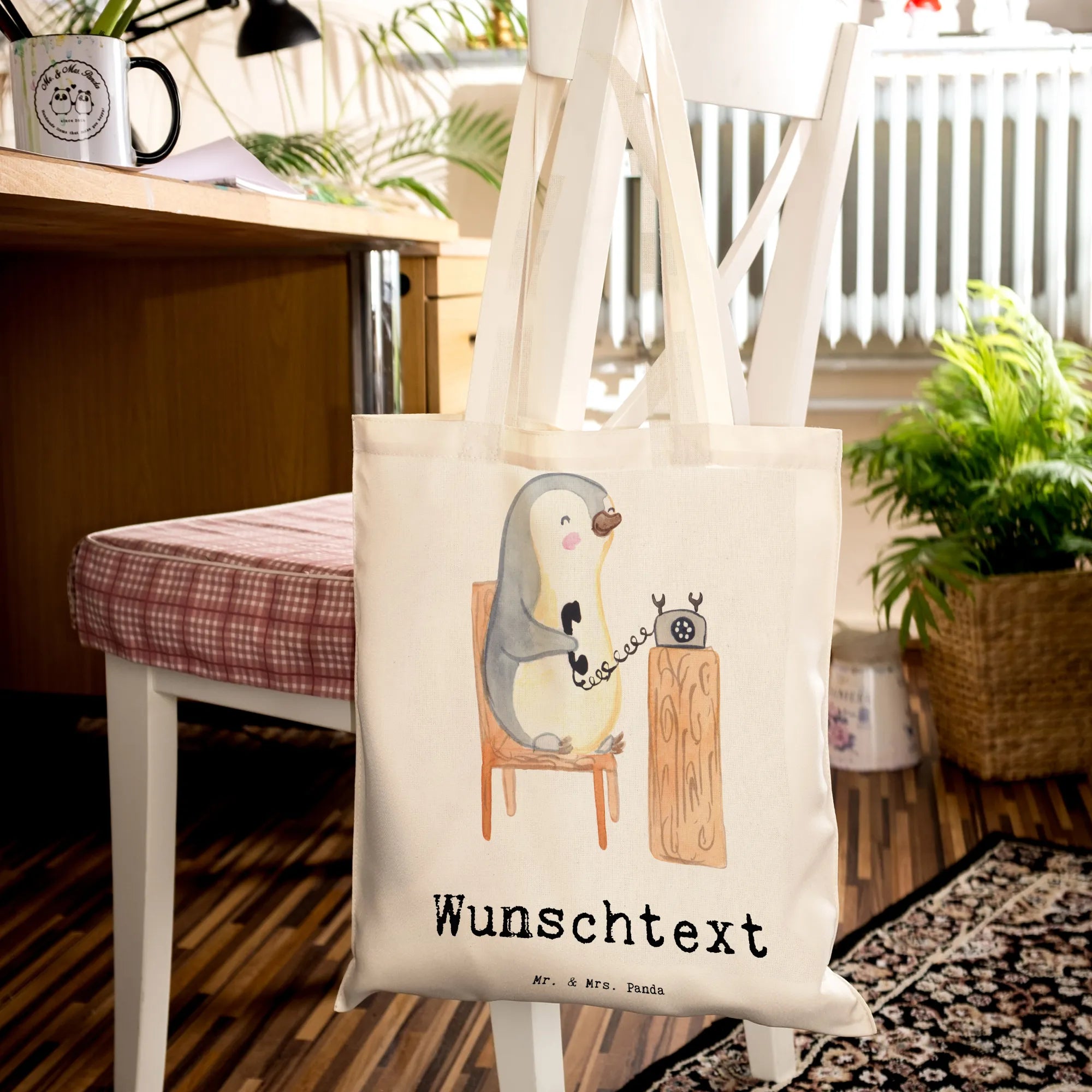 Der süße Pinguin steht stolz vor einem Telefon und verkörpert den Spaß am Lästern. Diese personalisierte Einkaufstasche kann mit deinem Wunschnamen oder einem besonderen Satz versehen werden, sodass sie zu einem einzigartigen Unikat wird, das du ganz nach deinem Stil gestalten kannst.