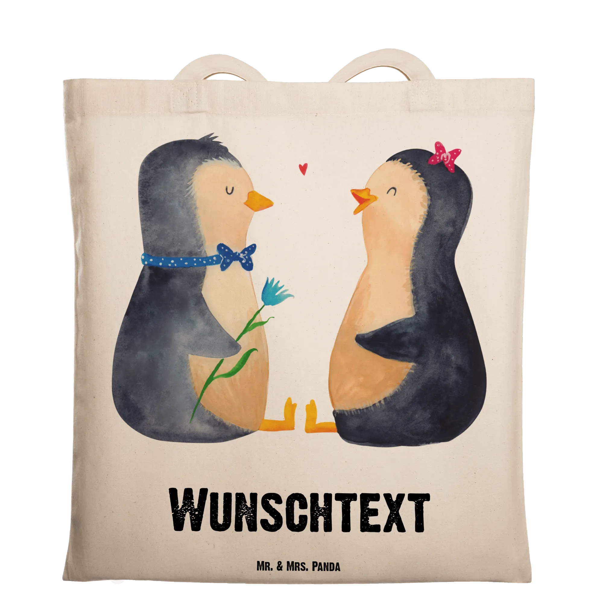 Diese wunderschöne personalisierte Tragetasche von Mr. & Mrs. Panda ist das perfekte Geschenk für alle, die ihre Liebe auf eine besondere Art und Weise ausdrücken möchten. Mit dem charmanten Motiv des Pinguin Pärchens versprüht diese Tasche pure Lebensfreude und ist ideal für Verliebte, die einander zeigen wollen, wie viel sie füreinander empfinden. Ob zum Valentinstag, zur Verlobung, zum Jahrestag oder einfach nur, um den Partner zu überraschen – diese personalisierte Einkaufstasche ist ein Liebesbeweis der besonderen Art.